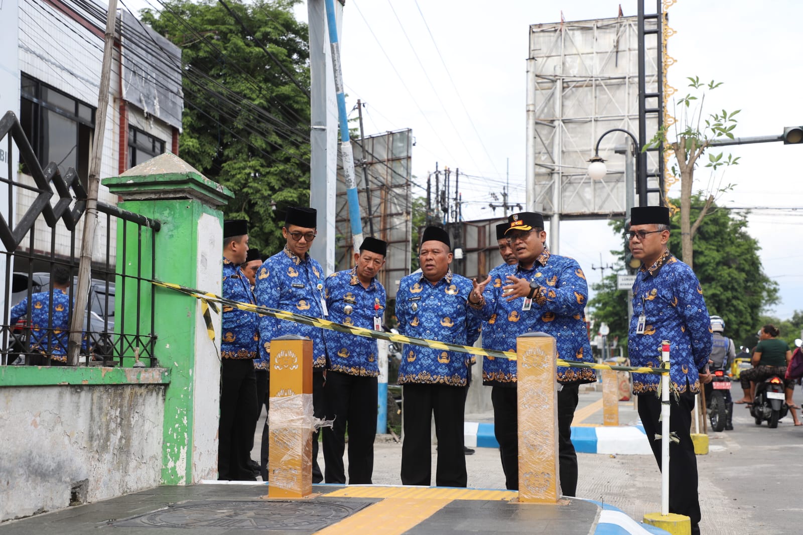 Setelah dari Puskesmas Jelak Ombo, rombongan melanjutkan peninjauan ke Proyek Pembangunan Trotoar di Simpang Tiga Jalan KH. Abdurrahman Wahid (Jl. Gus Dur) Jombang.