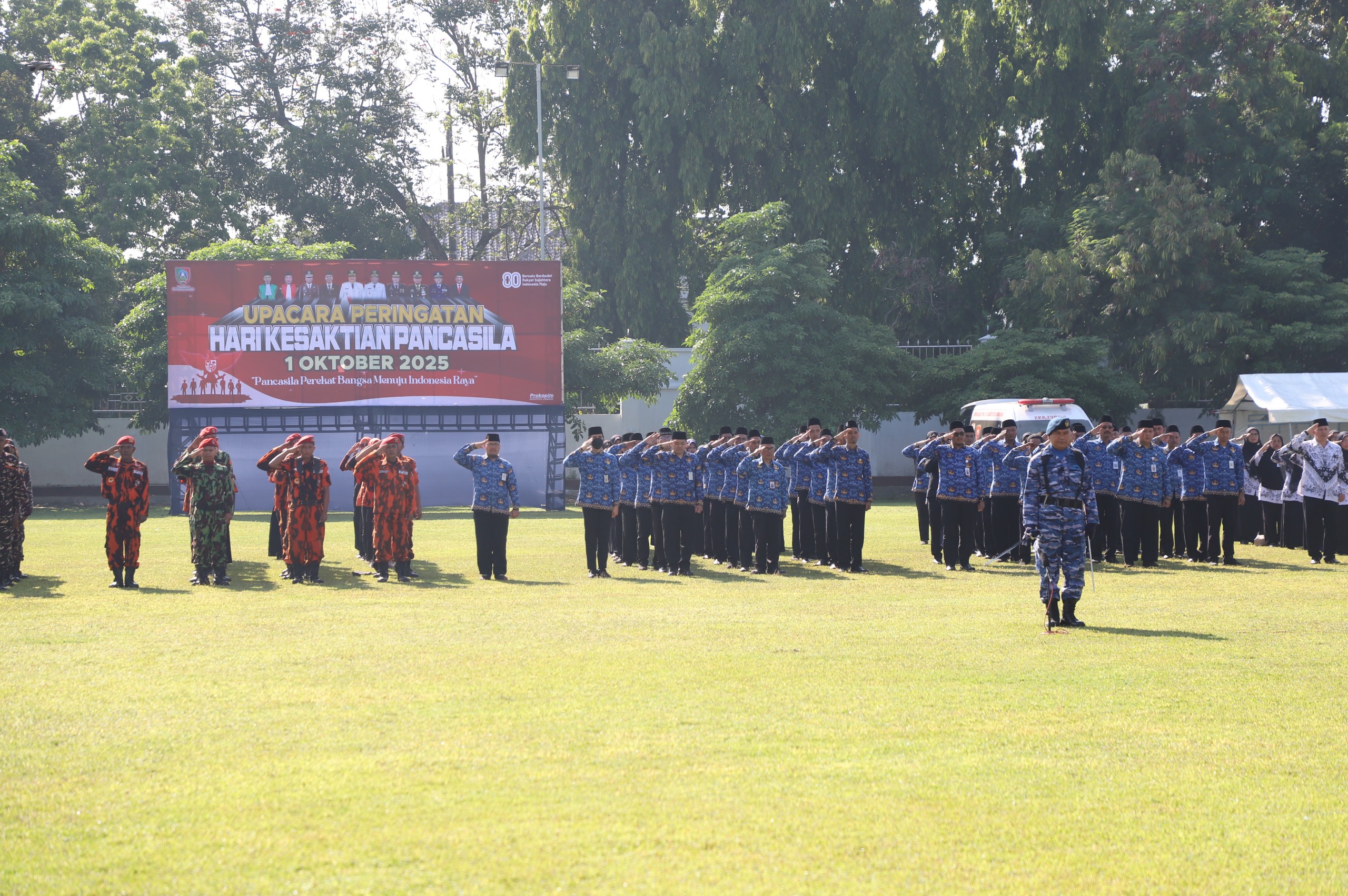 JOMBANGKAB – Langit Jombang pagi ini tampak cerah, seakan turut menghadirkan suasana khidmat dalam upacara peringatan Hari Kesaktian Pancasila yang digelar di Lapangan Pemkab Jombang, Rabu (1/10/2025). Dengan mengusung tema “Pancasila Perekat Bangsa Menuju Indonesia Raya”, seluruh peserta upacara tampak penuh semangat mengikuti setiap rangkaian acara.