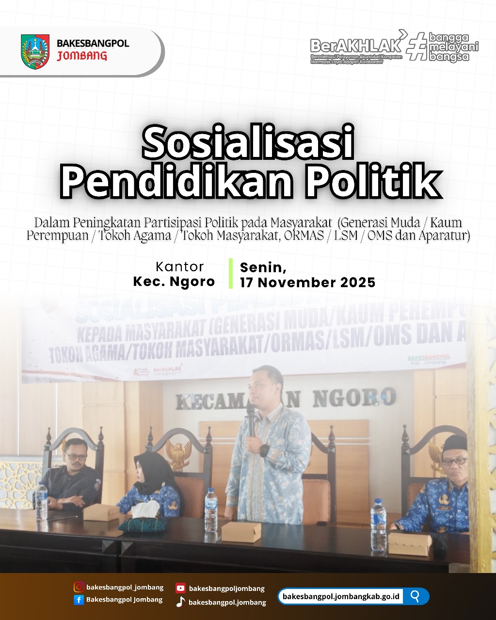"Sosialisasi Pendidikan Politik Kepada Masyarakat (Generasi Muda / Kaum Perempuan / Tokoh Agama / Tokoh Masyarakat, ORMAS / LSM / OMS dan Aparatur)” di Kantor Kecamatan Ngoro