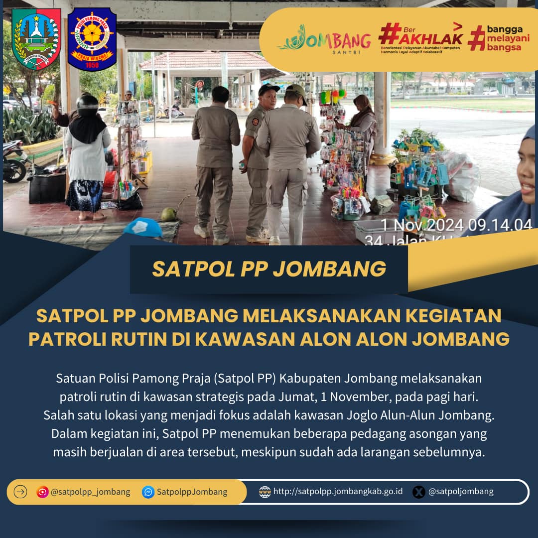 SATPOL PP JOMBANG STERILISASI ALON ALON DARI PKL DAN PEDAGANG ASONGAN