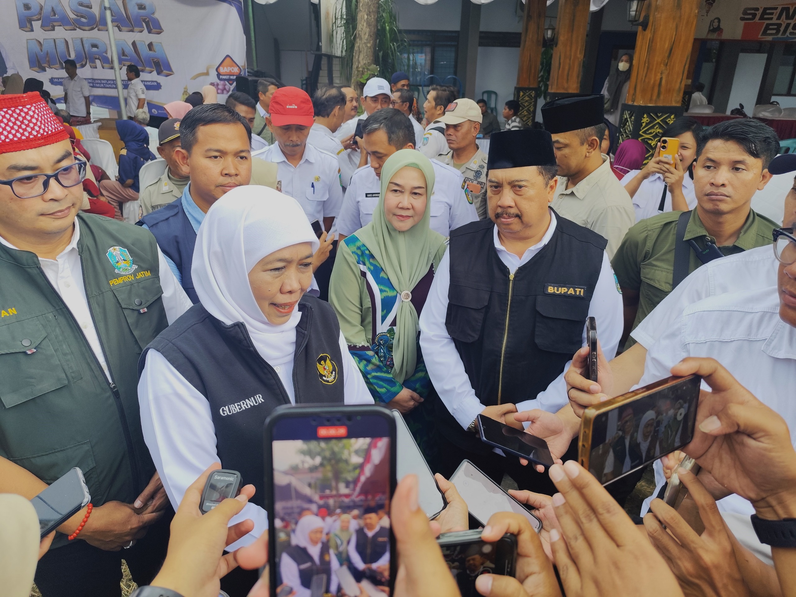 Gubernur Khofifah mengimbau masyarakat untuk tidak melakukan panic buying karena stok pangan dan BBM dipastikan aman.