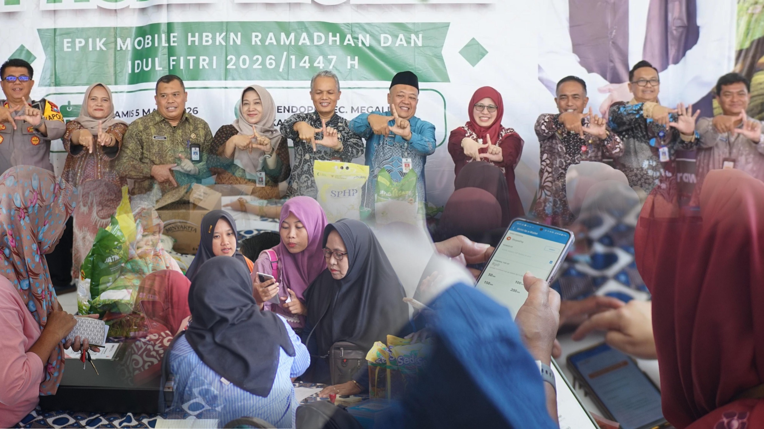 "Dalam rangka pengendalian inflasi menjelang Hari Besar Keagamaan Nasional (HBKN) Ramadhan dan Idul Fitri 1447 H/2026, Tim Pengendalian Inflasi Daerah (TPID) Provinsi Jawa Timur bersama TPID Kabupaten Jombang sinergi menggelar kegiatan Pasar Murah Etalase Pengendalian Inflasi Kabupaten/Kota (EPIK) Mobile di Pendopo Kecamatan Megaluh", tutur Asisten Perekonomian dan Pembangunan Kabupaten Jombang Bambang Suntowo