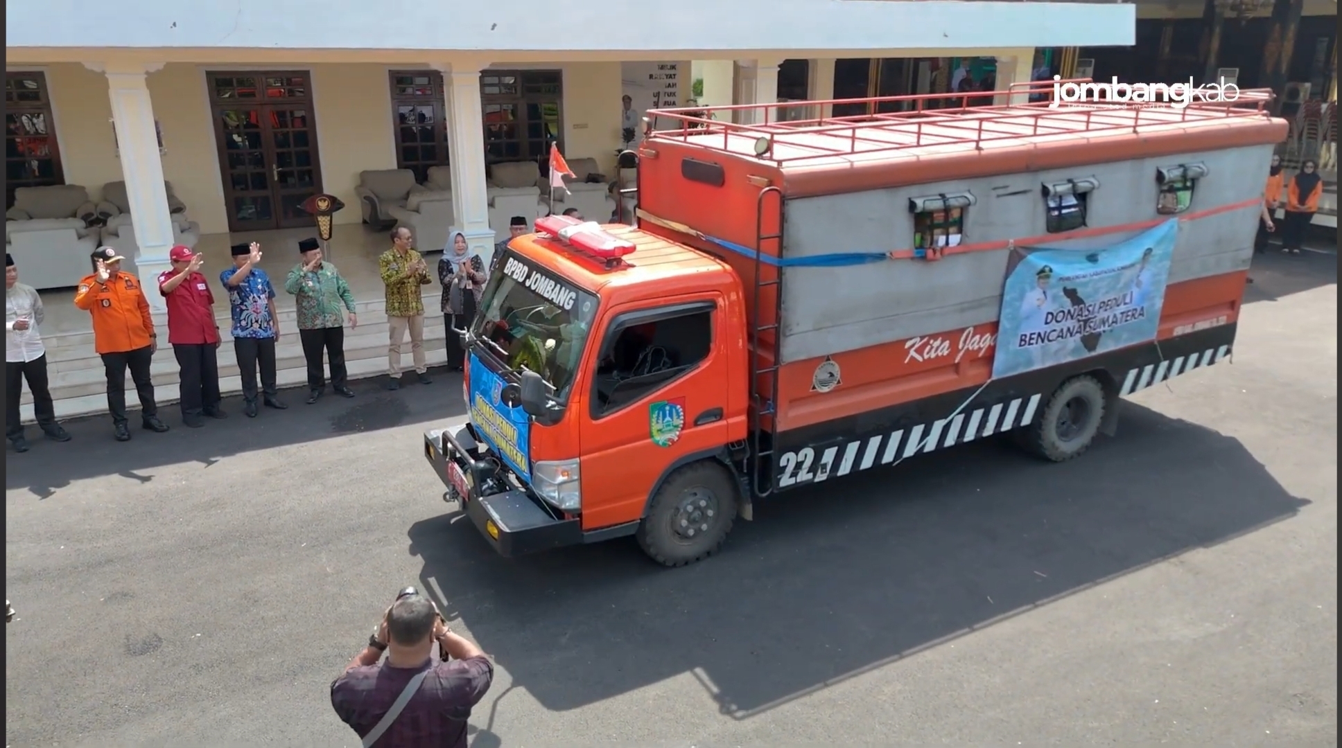 JOMBANGKAB – Bupati Jombang, Warsubi S.H., M.Si., Jumat (12/12/2025) pagi, melepas pemberangkatan bantuan kemanusiaan dari Pendopo Kabupaten Jombang. Bantuan ini ditujukan bagi saudara-saudara sebangsa yang tengah terdampak bencana alam di wilayah Sumatera.