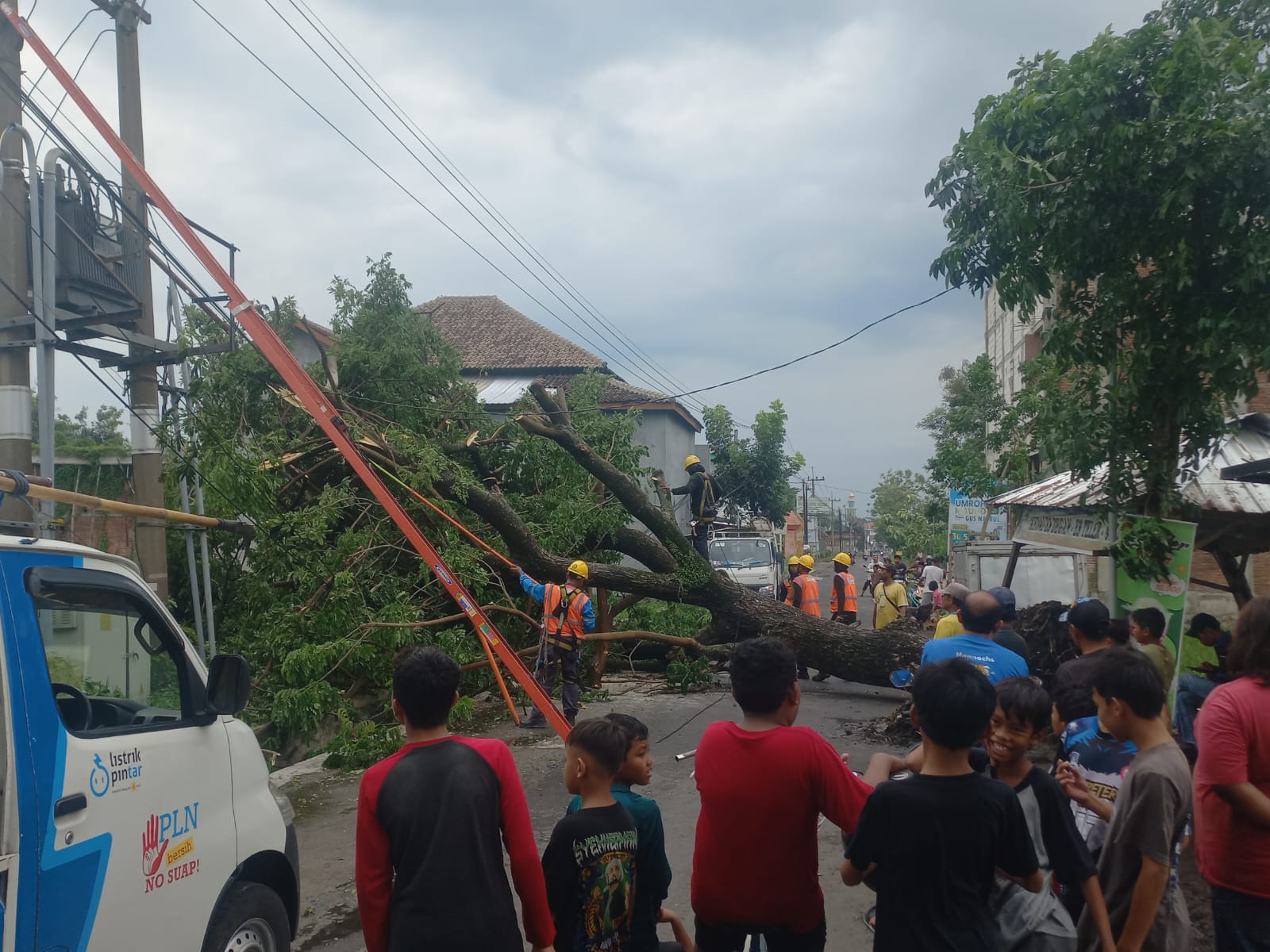 Penanganan Pohon tumbang lokasi Desa Jatireo