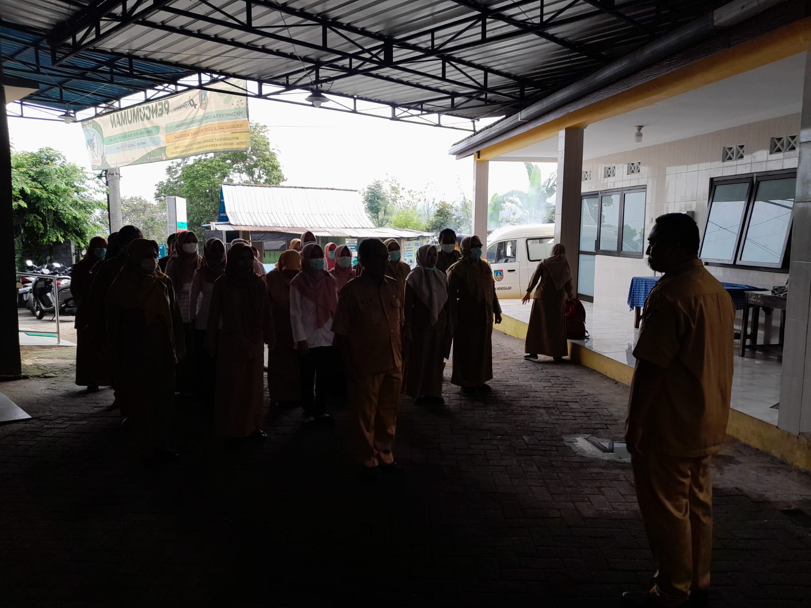 Cuaca Mendung, Pegawai Puskesmas Wonosalam Tetap Ikuti Apel