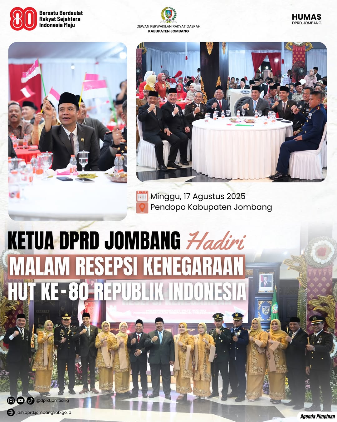 Ketua DPRD Kabupaten Jombang hadiri Malam Resepsi Kenegaraan Hari Ulang Tahun ke-80 Kemerdekaan Republik Indonesia