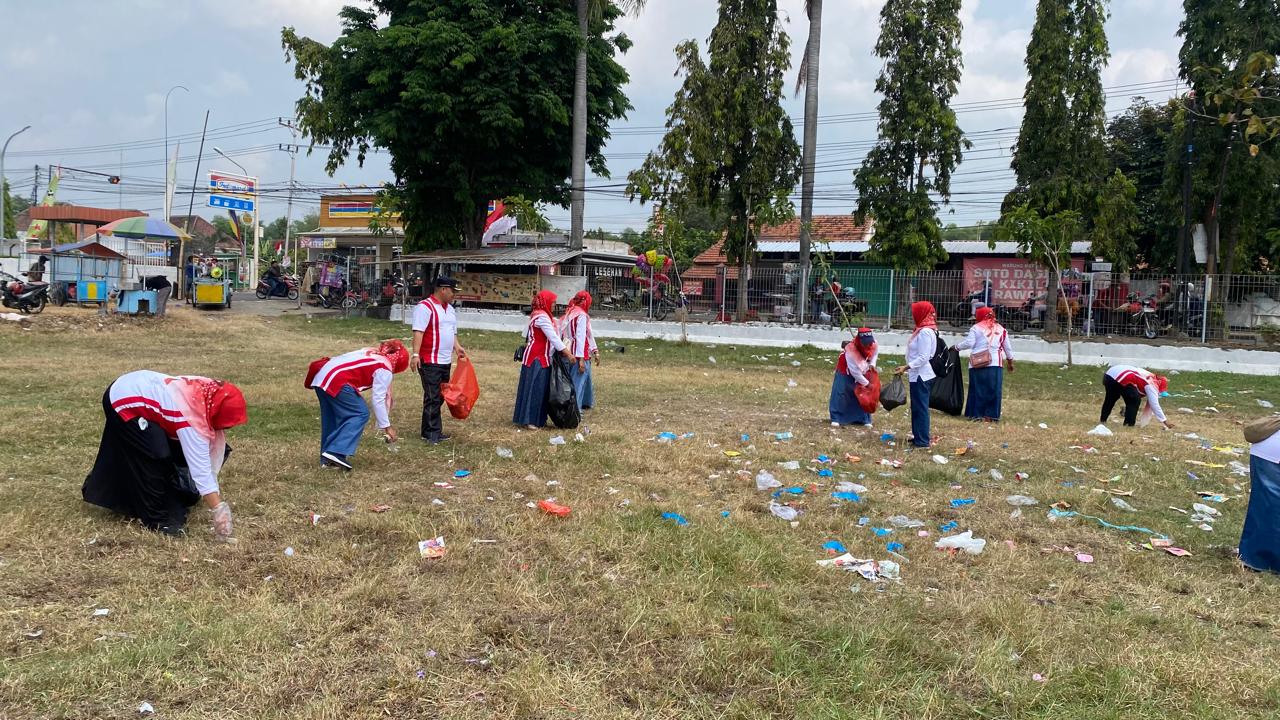 Plt Camat Mojowarno Ikut Aksi Bersih Sampah di Lapangan Mojowarno Usai Pawai Budaya