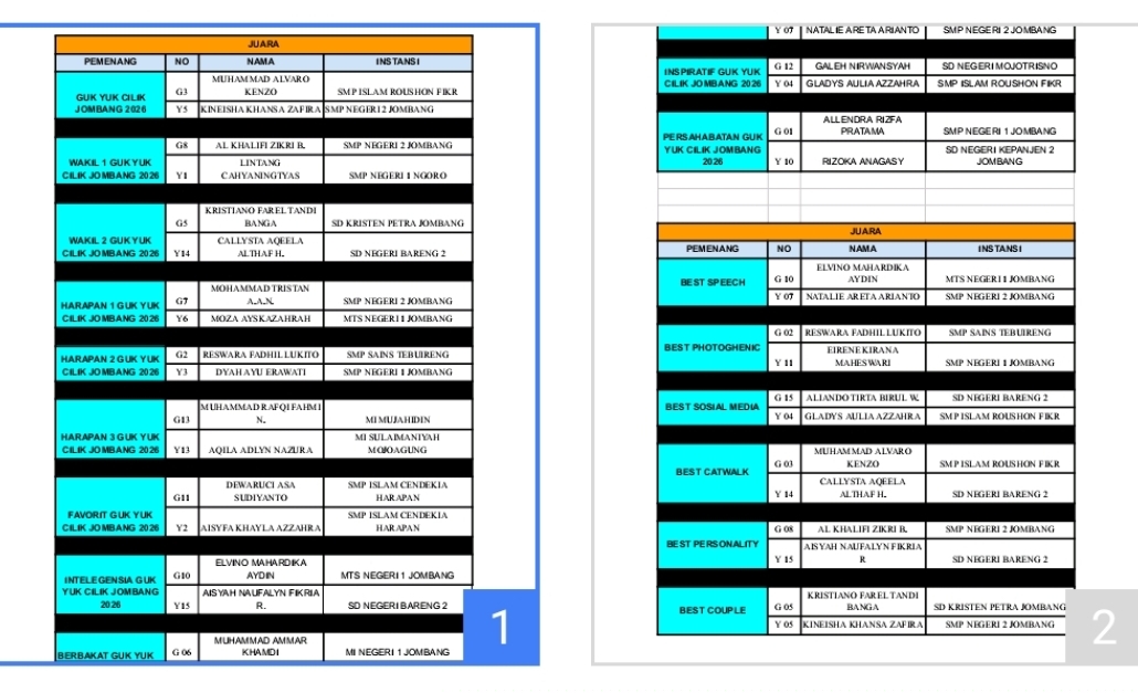 Berikut Rekap Juara Guk Yuk Cilik Jombang 2026: