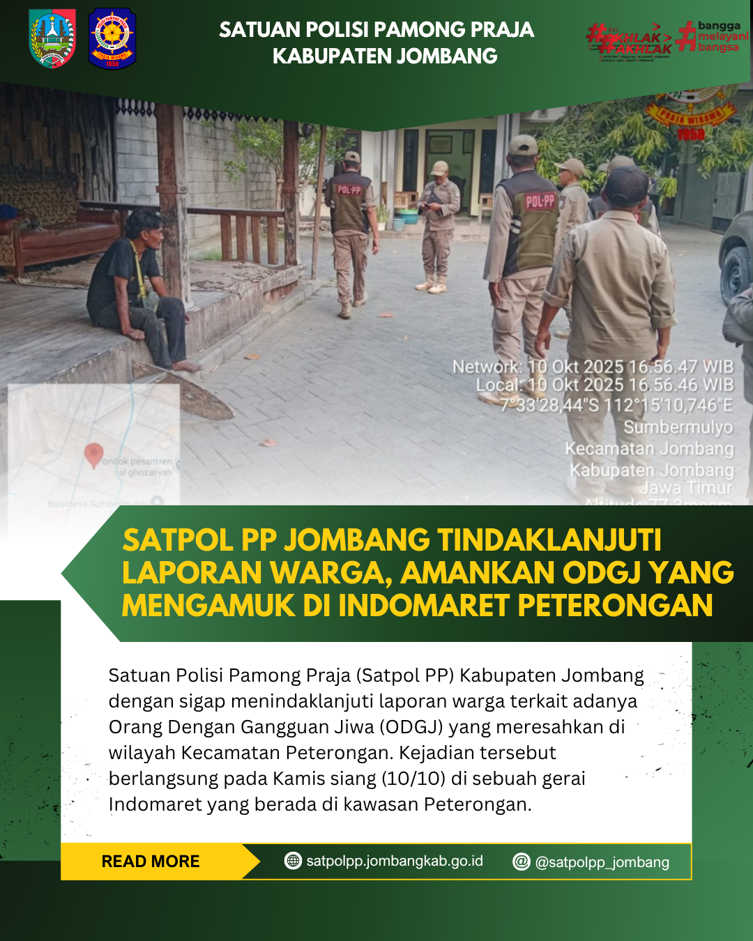 Satpol PP Jombang Tindaklanjuti Laporan Warga, Amankan ODGJ yang Mengamuk di Indomaret Peterongan