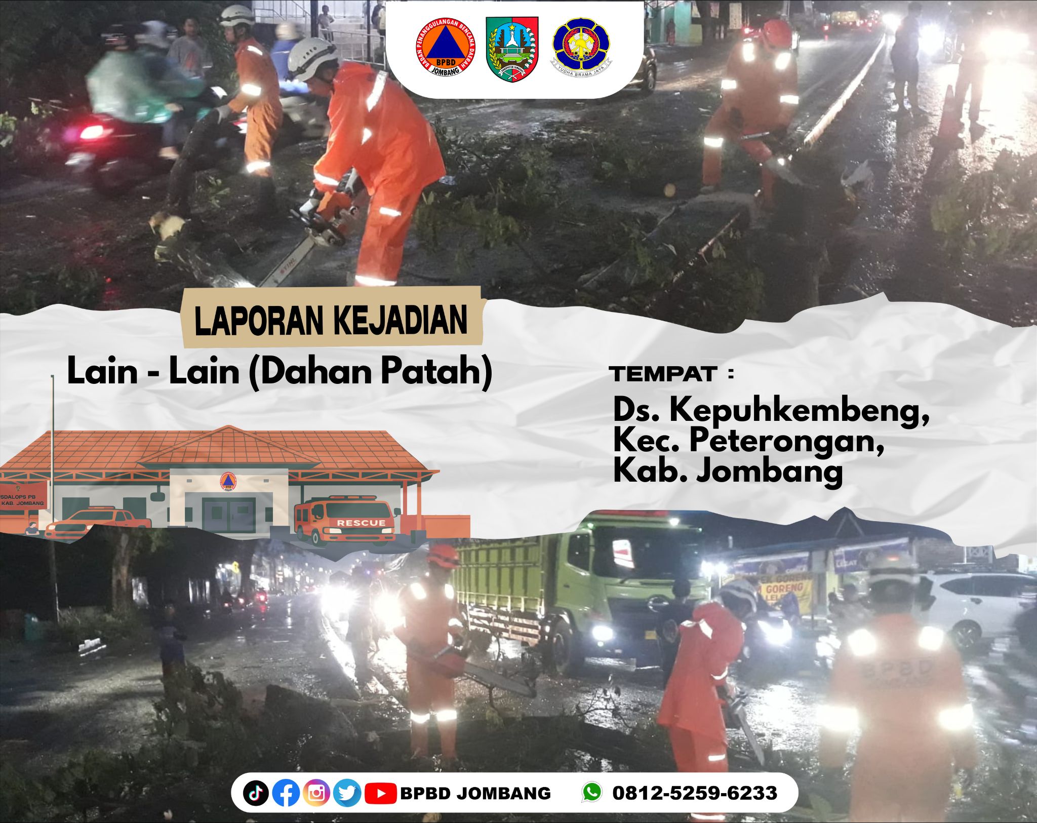 Respons Cepat BPBD Jombang, Dahan Patah yang Tutup Jalan di Peterongan Berhasil Dievakuasi