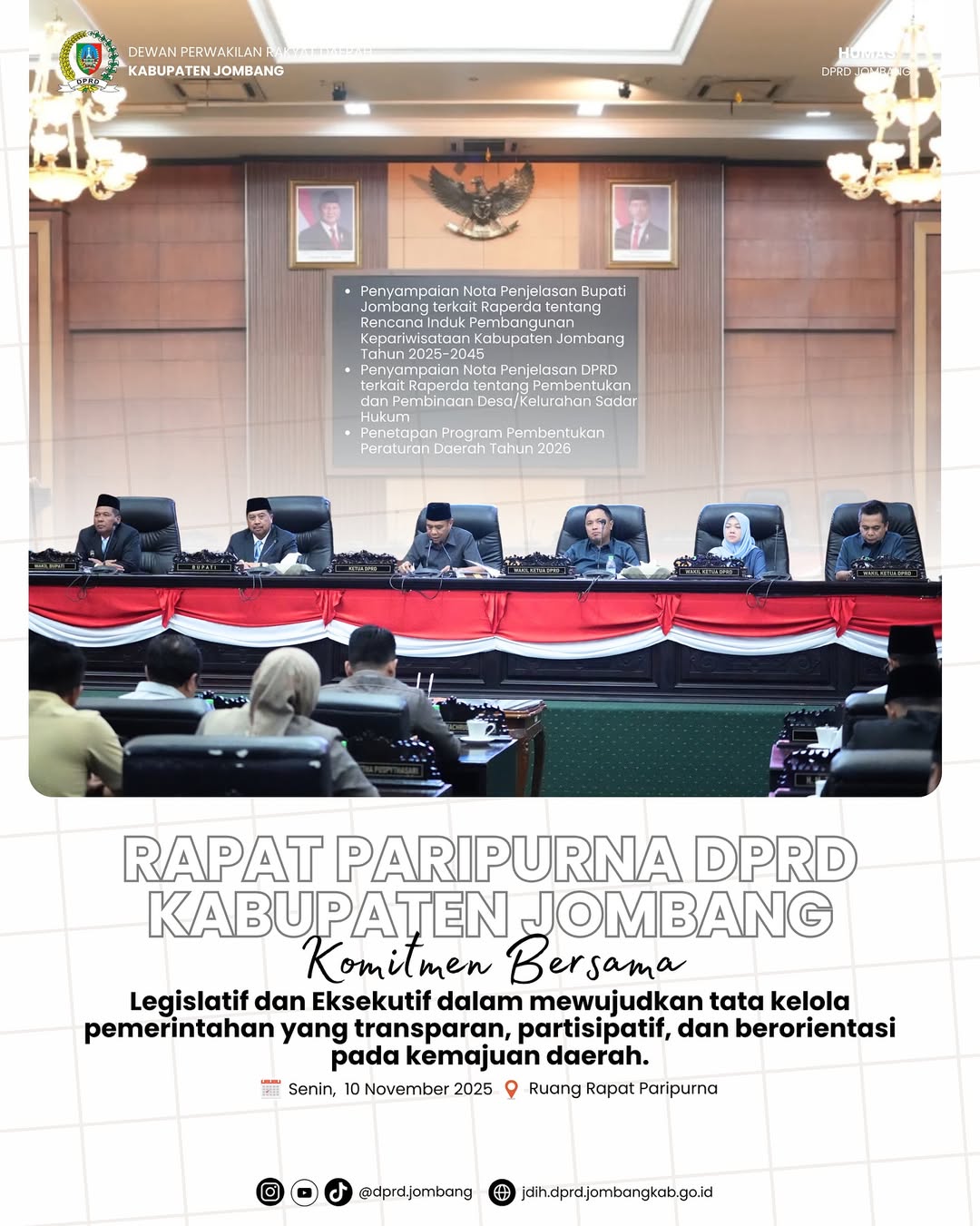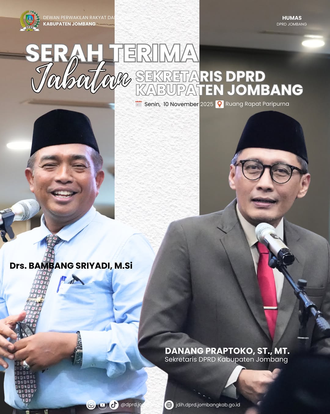 Serah terima jabatan Sekretaris DPRD yang berlangsung hangat dan penuh kebersamaan di Ruang Rapat DPRD Kabupaten Jombang