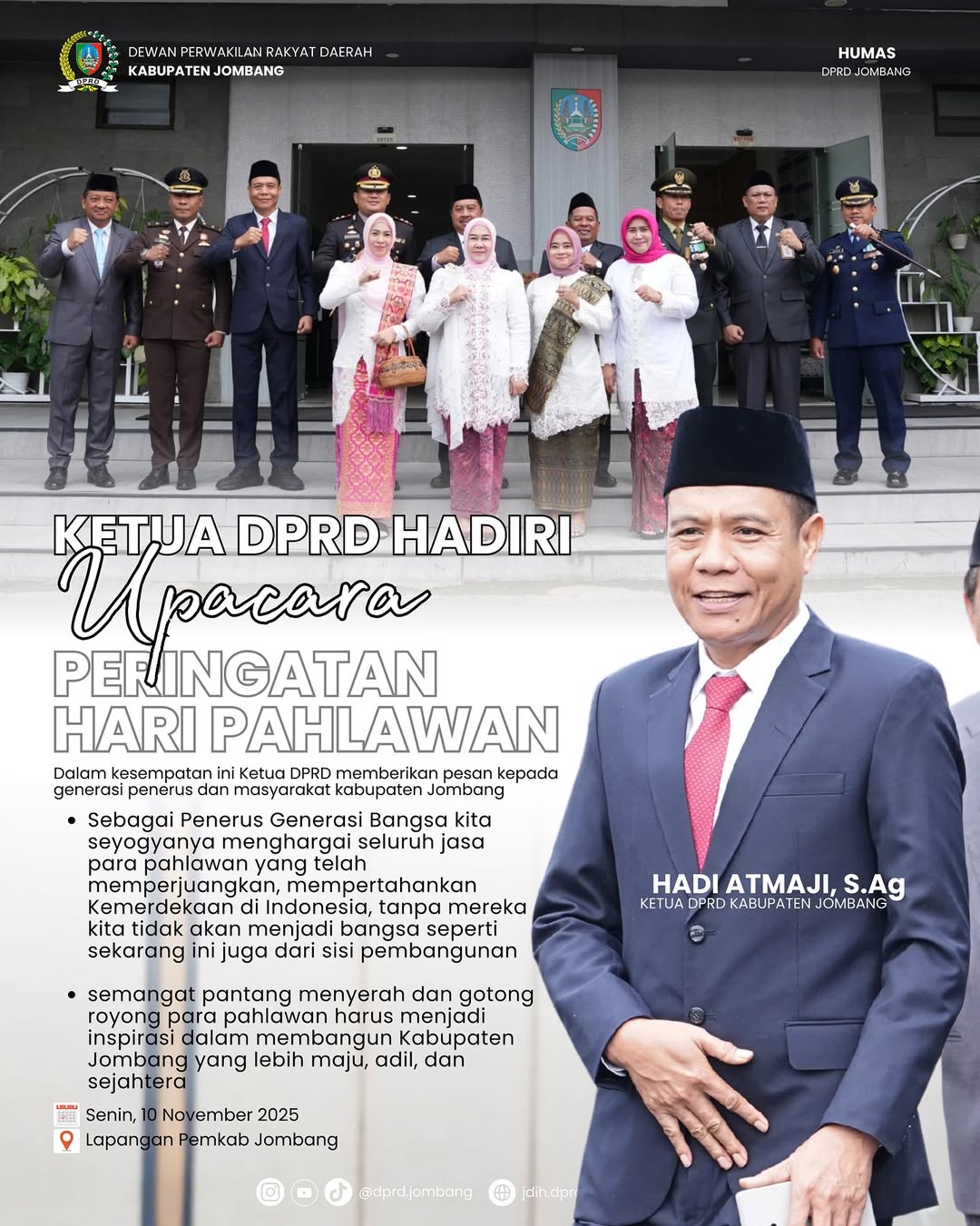 Ketua DPRD Kabupaten Jombang menghadiri upacara peringatan yang digelar di Lapangan Pemkab Jombang