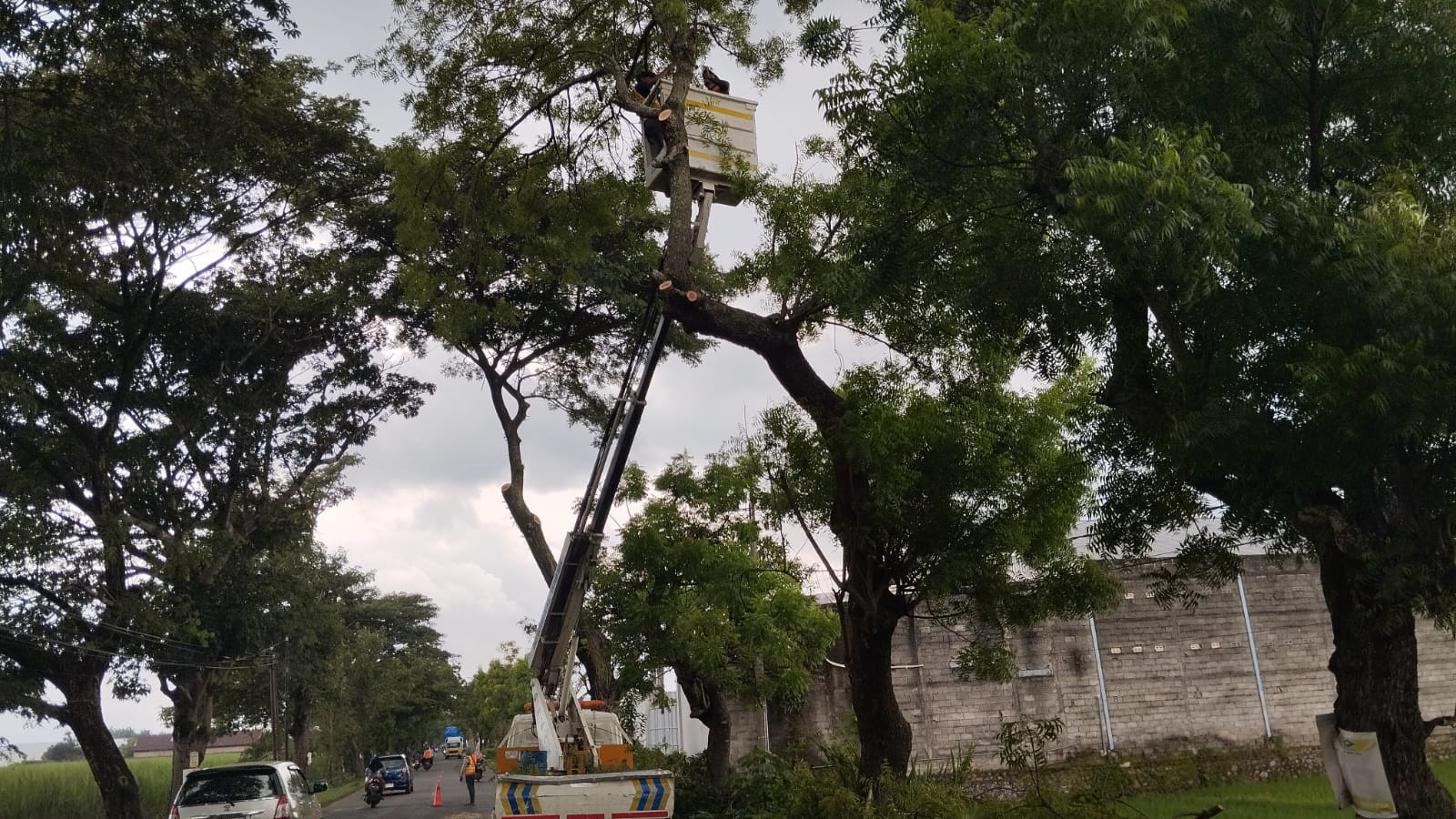 Dinas PUPR Lakukan Pemangkasan Ranting di Ruas Jalan Selorejo–Mojoroto