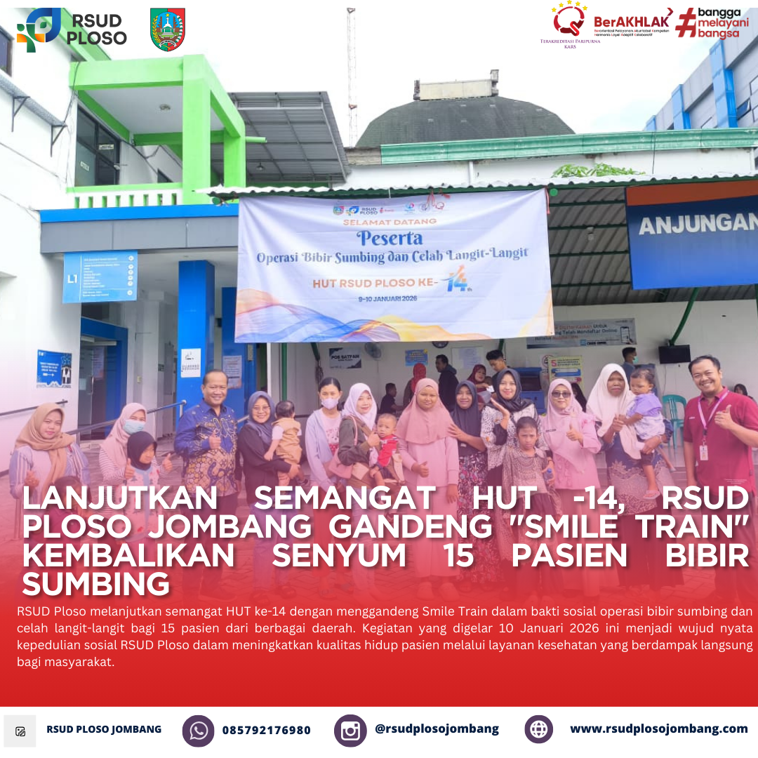 LANJUTKAN SEMANGAT HUT -14, RSUD PLOSO JOMBANG GANDENG "SMILE TRAIN" KEMBALIKAN SENYUM 15 PASIEN BIBIR SUMBING