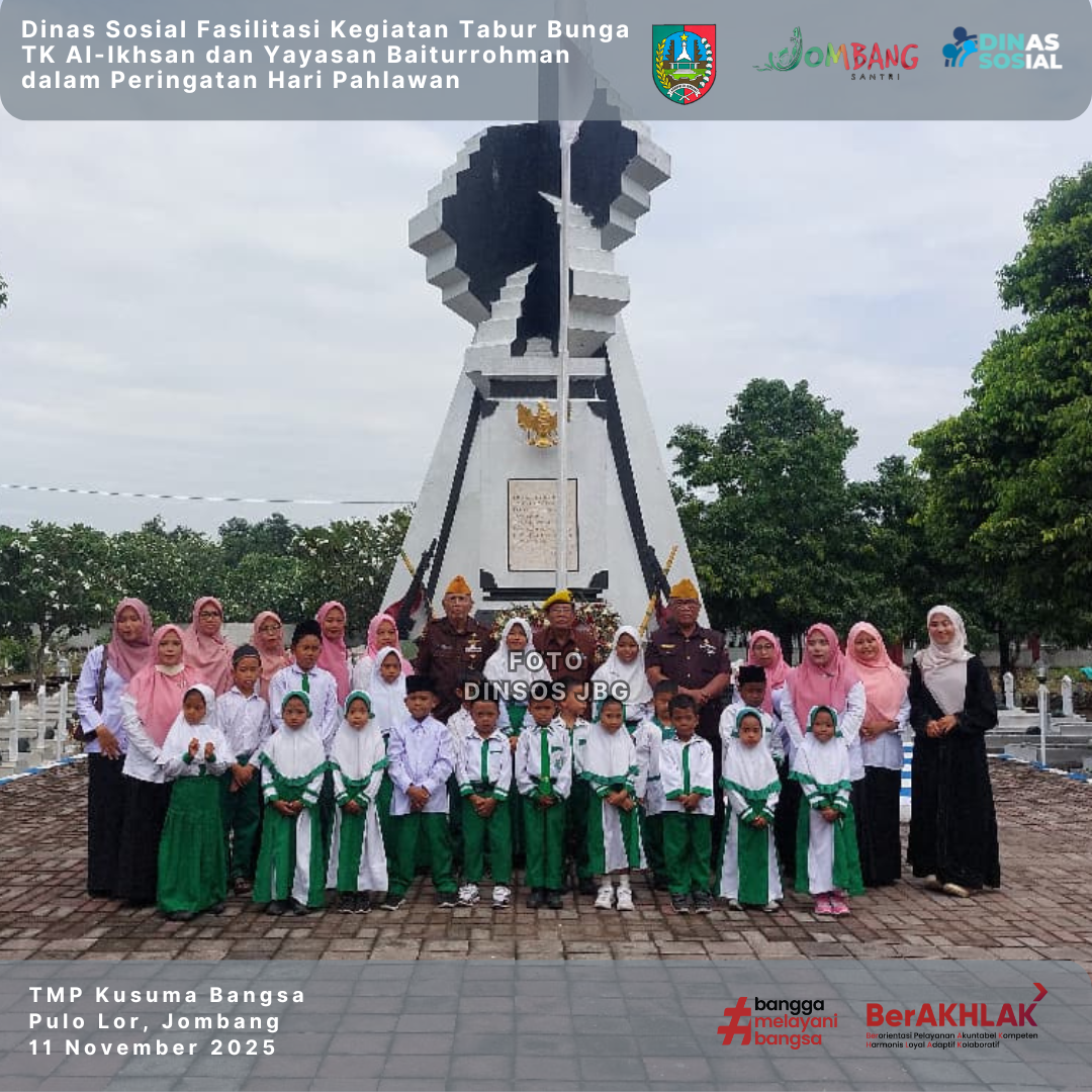 Dinas Sosial Fasilitasi Kegiatan Tabur Bunga TK Al-Ikhsan dan Yayasan Baiturrohman dalam Peringatan Hari Pahlawan