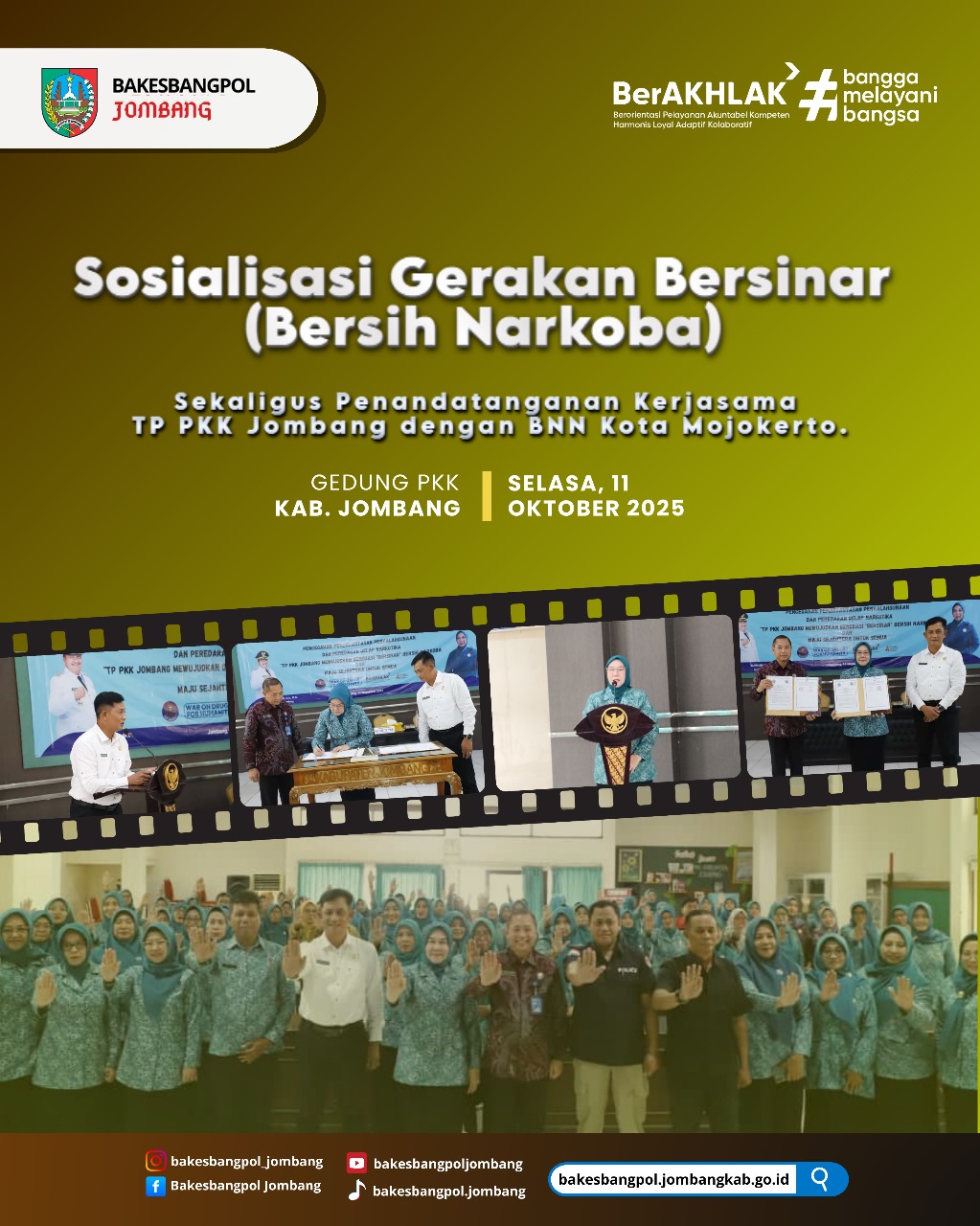 Pencegahan Pemberantasan Penyalahgunaan dan Peredaran Gelap Narkotika “TP PKK Jombang Mewujudkan Generasi "BERSINAR" Bersih Narkoba dan Maju Sejahtera Untuk Semua”