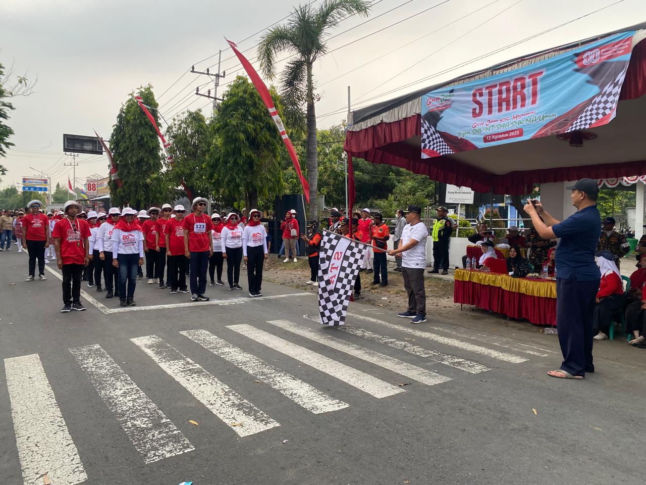 Plt Camat Mojowarno Lepas Peserta Gerak Jalan HUT ke-80 RI Kecamatan Mojowarno