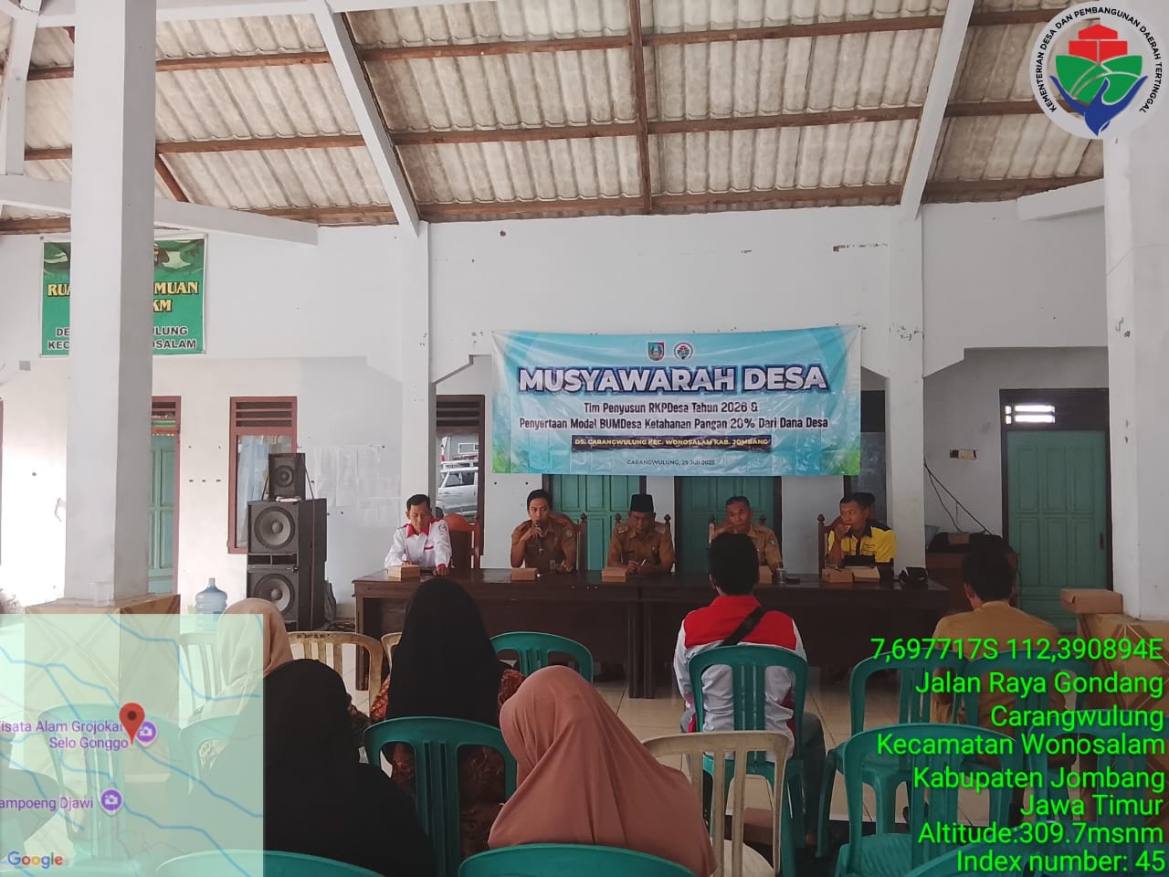 Musdes Pembentukan Tim Penyusun RKPDesa Tahun 2026 dan Penyertaan Modal BUMDesa Ketahanan Pangan dari Dana Desa Ds. Carangwulung