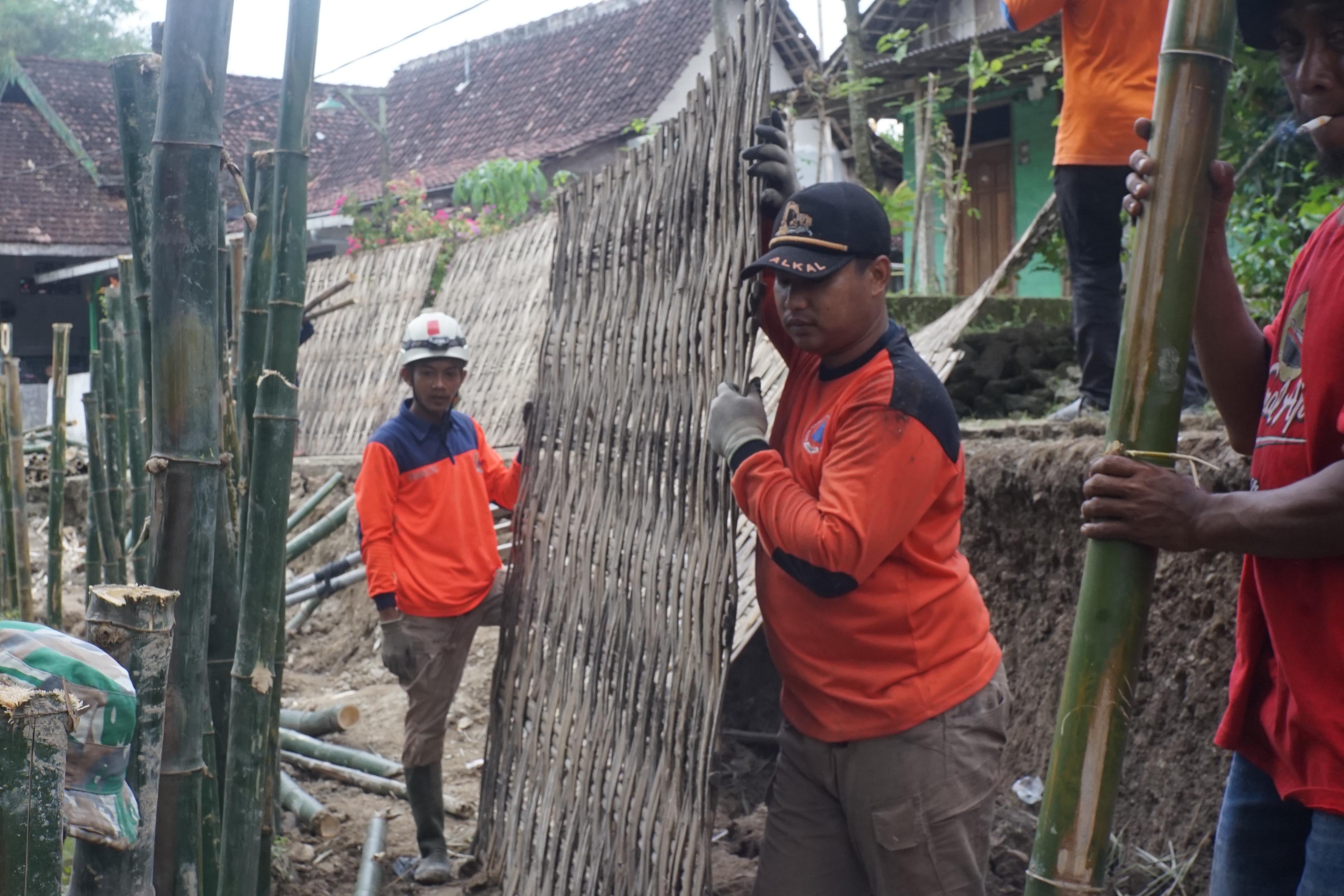 "Saat ini proses memasuki tahap pemasangan anyaman bambu sebagai pondasi awal, sebelum nantinya dilakukan pengisian material pasir menggunakan karung (sandbag)," jelas Wiku.