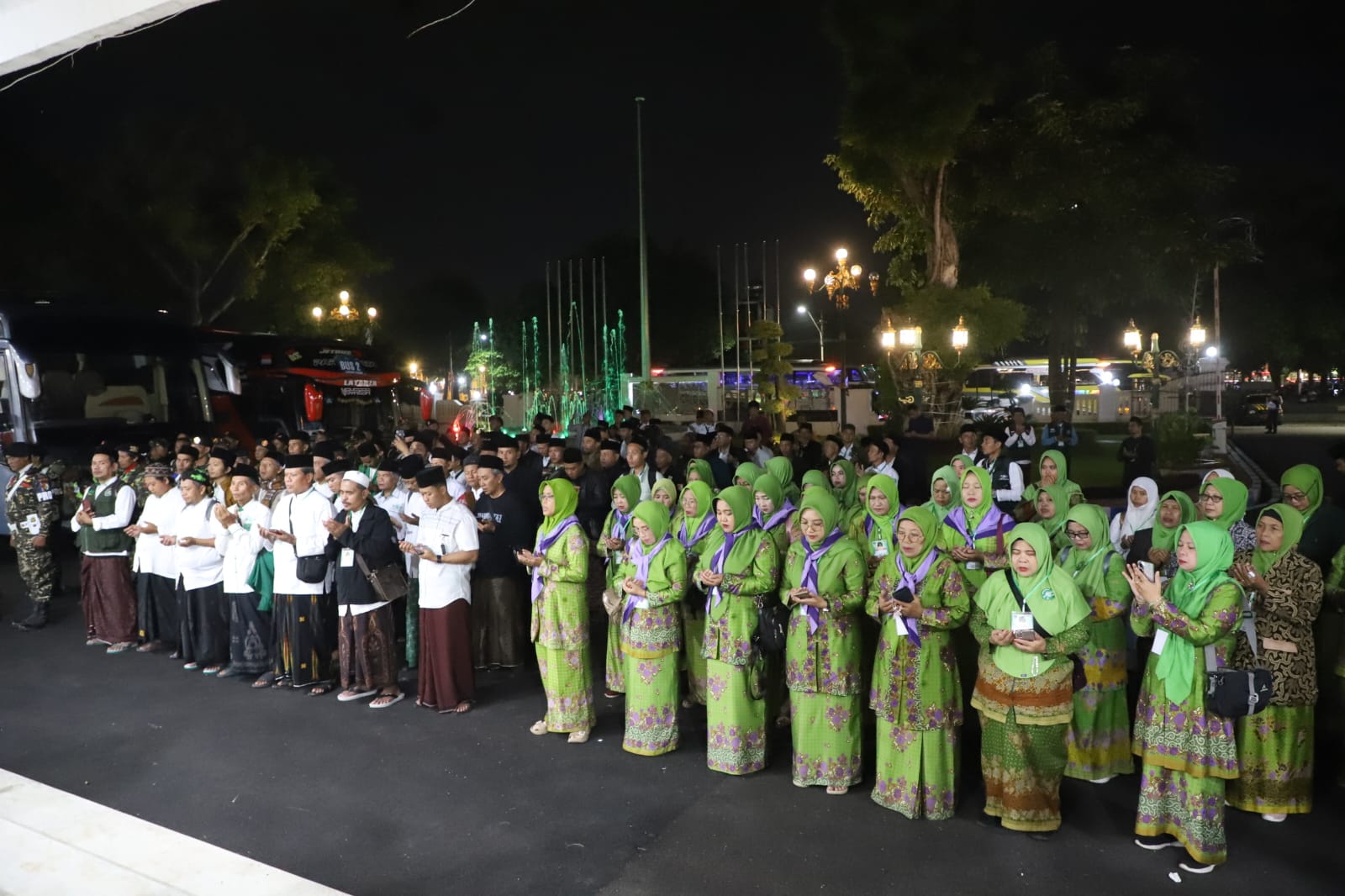 Bupati Warsubi berdoa agar seluruh jamaah diberikan kelancaran, keamanan, dan keselamatan selama perjalanan hingga kembali ke Jombang dalam keadaan sehat wal afiat.