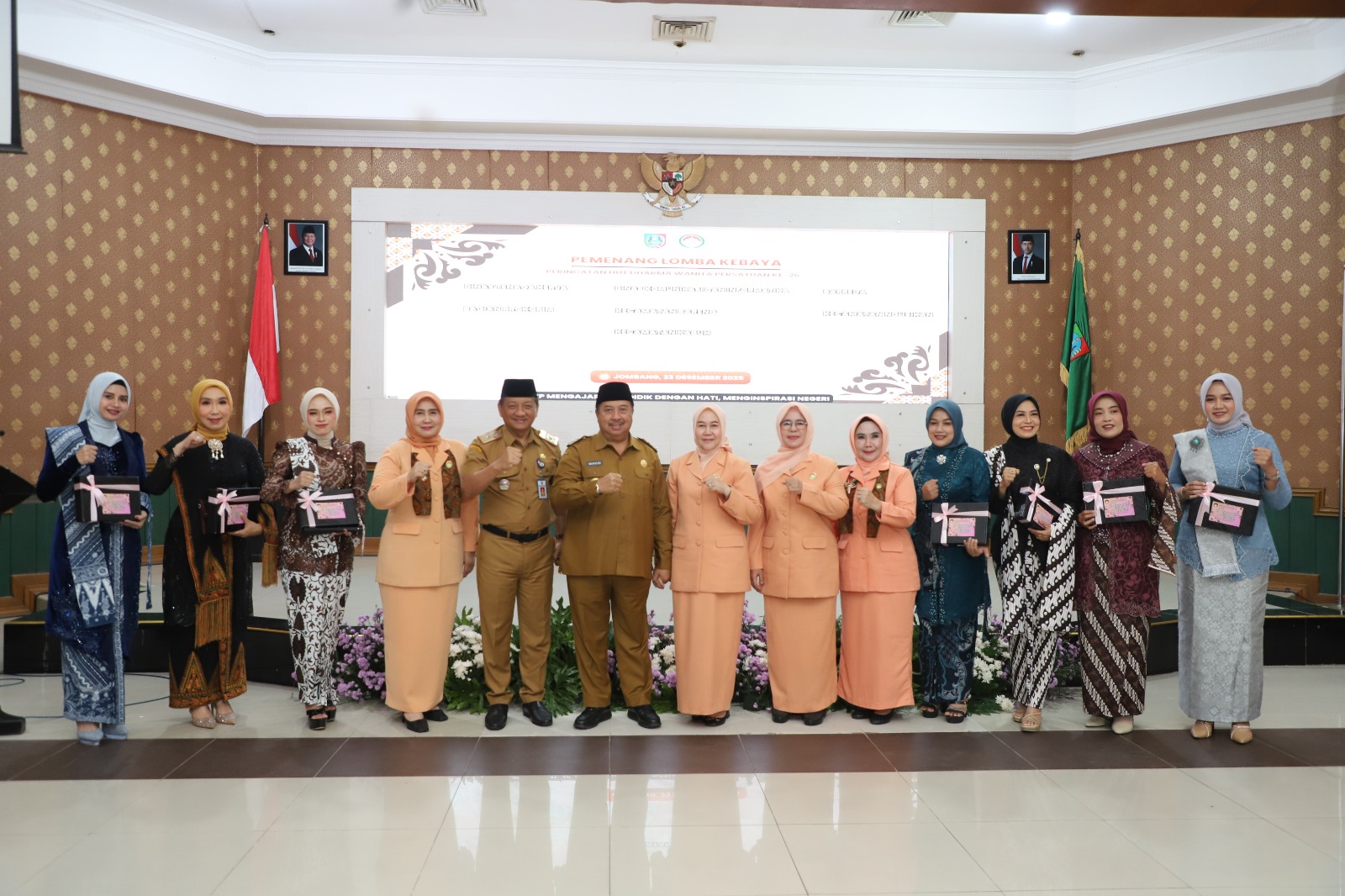 JOMBANGKAB – Suasana hangat dan penuh semangat menyelimuti Ruang Bung Tomo Gedung Pemkab Jombang pada Selasa (23/12/2025) pagi. Pengurus dan anggota Dharma Wanita Persatuan (DWP) Kabupaten Jombang berkumpul untuk merayakan puncak resepsi HUT ke-26 DWP dengan tema besar: “Peran Strategis Dharma Wanita Persatuan dalam Pendidikan Anak Bangsa untuk Indonesia Emas 2045.”