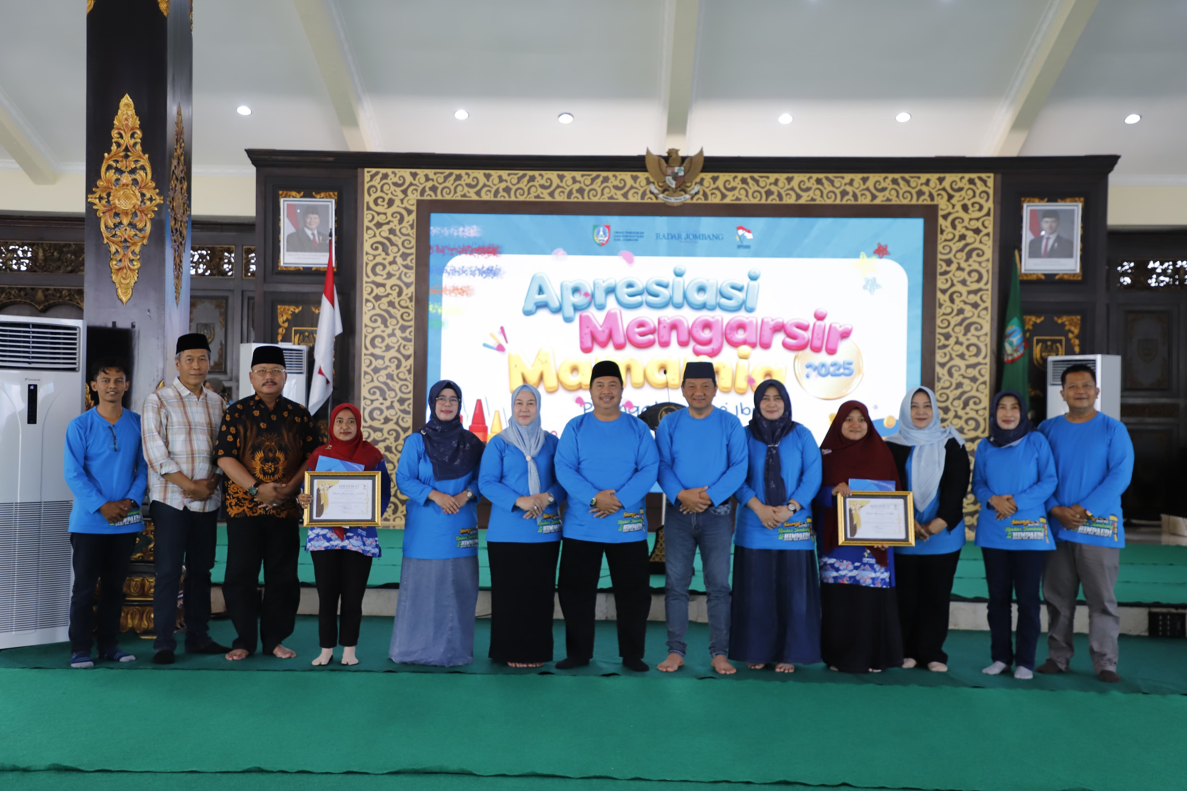 JOMBANGKAB – Suasana Pendopo Kabupaten Jombang pada Sabtu pagi (20/12/2025) tak sekadar riuh oleh suara anak-anak. Namun tersaji sebuah pemandangan menyentuh. Jari jemari kecil menggenggam spidol, bergerak selaras dengan bimbingan lembut tangan para ibu. Inilah suasana Grand Final Apresiasi Mengarsir Mamamia 2025, sebuah puncak kolaborasi antara HIMPAUDI Kabupaten Jombang dan Jawa Pos Radar Jombang. Lebih dari sekadar kompetisi seni, ajang ini merupakan perayaan cinta dalam rangka memperingati Hari Ibu.