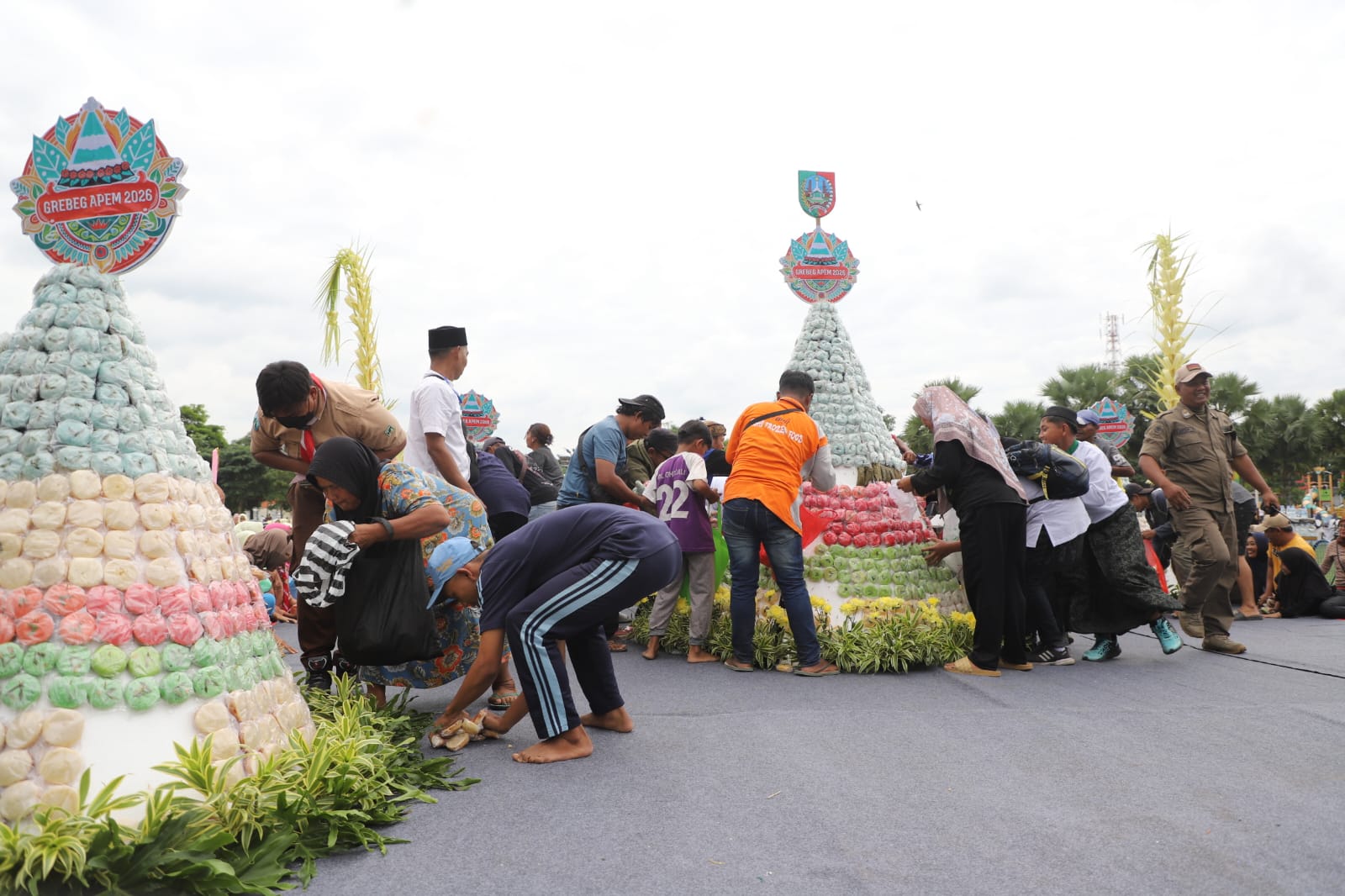 "Dalam kemeriahan ini, sebanyak 15.750 apem disajikan melalui tumpeng raksasa di Alun-Alun, satu unit mobil pick-up, serta tujuh tumpeng di armada Tossa. Acara ini melibatkan sekitar 4.000 siswa dari 23 lembaga sekolah (SD/MI dan SMP/MTs), dengan harapan kegiatan serupa dapat terus digelar lebih meriah setiap tahunnya," pungkasnya.