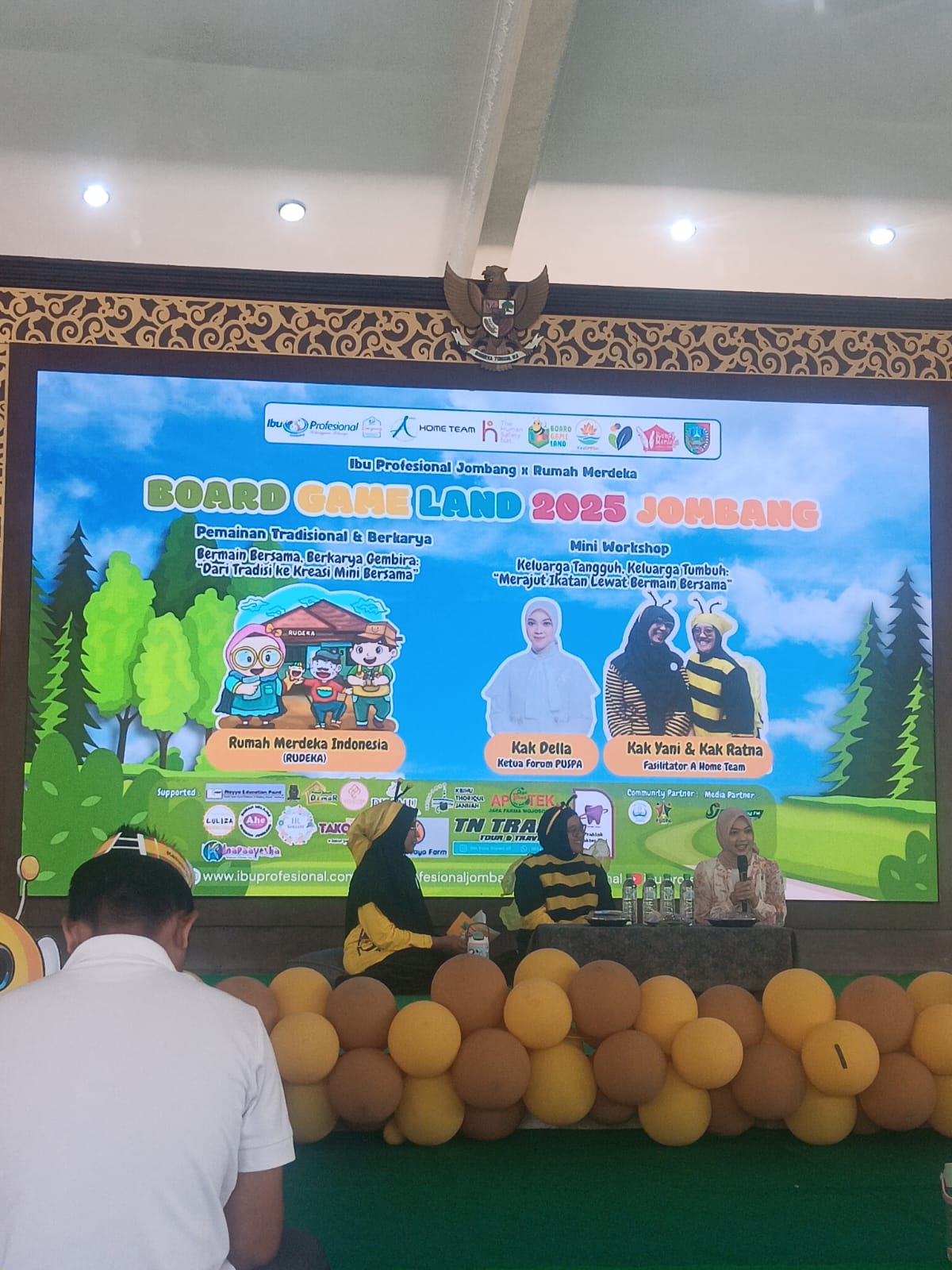 Selain sesi bermain, para orang tua mengikuti talkshow inspiratif. Kak Ratna Palupi, Fasilitator keluarga A Home Team, dan Kak Della, Ketua Forum PUSPA Arimbi, berbagi pandangan mengenai peran vital aktivitas bermain sebagai sarana membangun komunikasi, empati, rasa aman, dan ketahanan keluarga.
