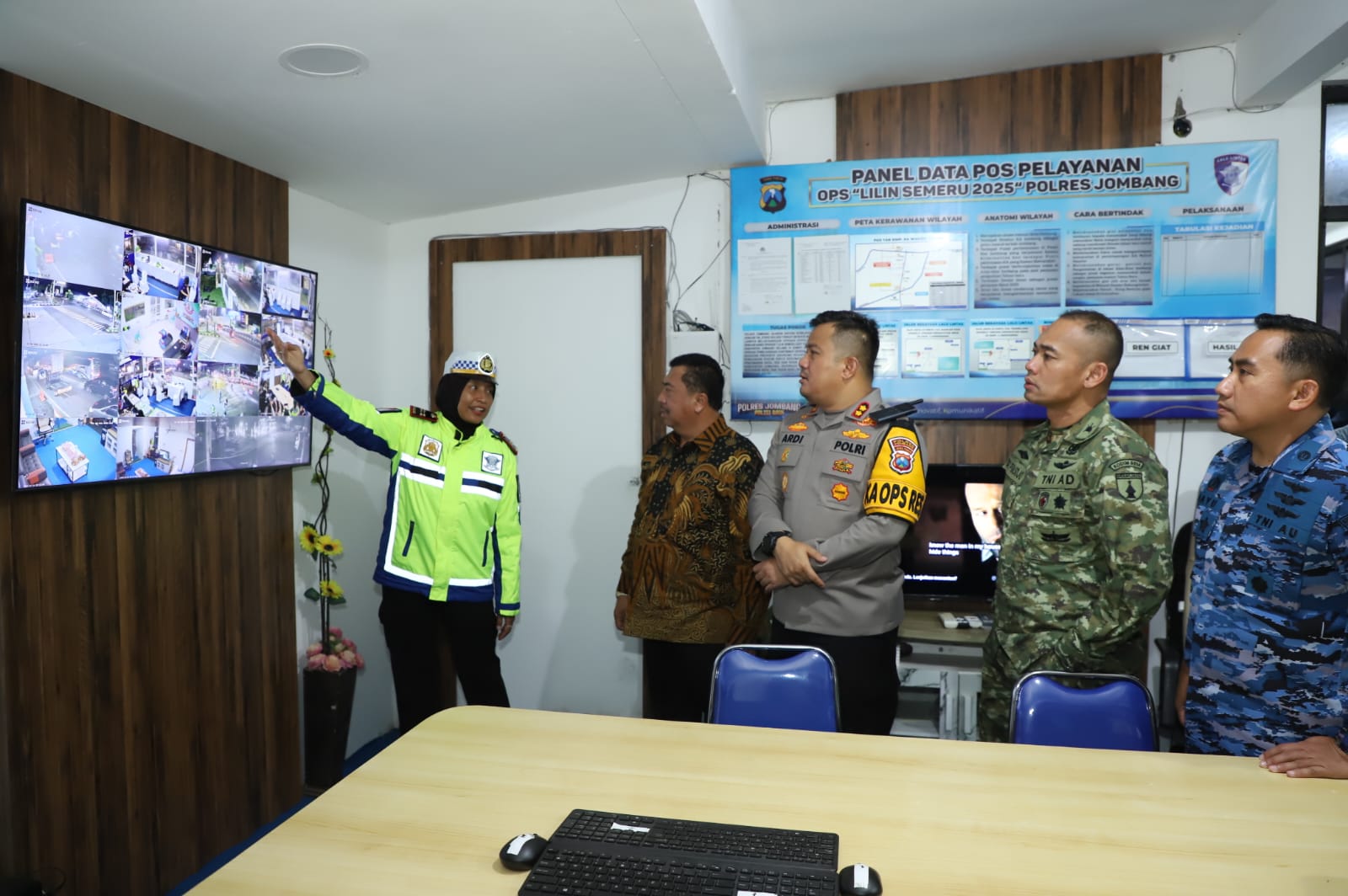 Dipandu oleh Kapolres Jombang AKBP Ardi Kurniawan, Bupati Warsubi memantau layanan yang tersedia seperti area playground, toilet, mushala, ruang laktasi, kursi pijat, wifi gratis, kopi gratis, area pantau CCTV, dan spot foto viral bertemakan film Frozen.