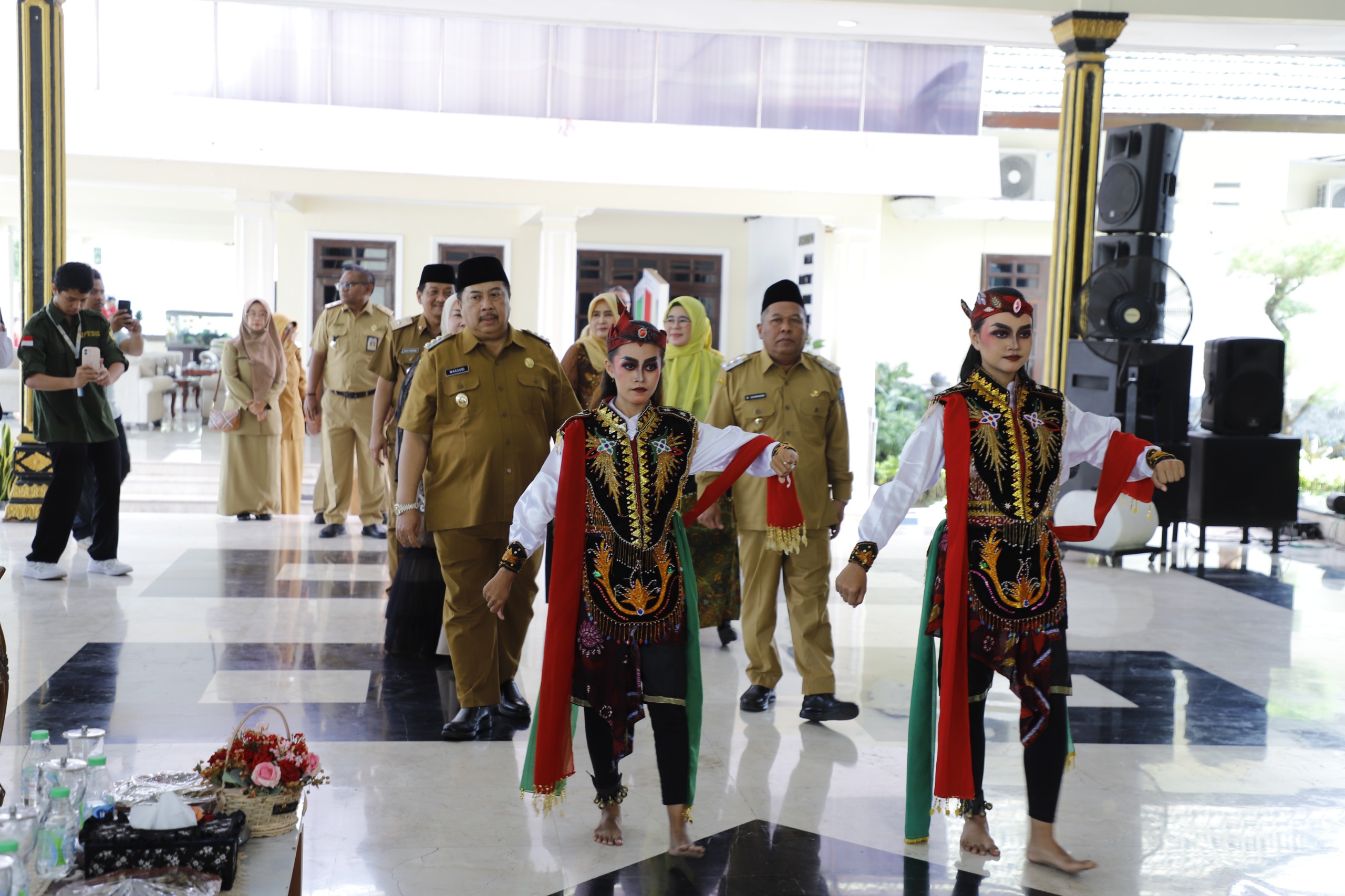 Tiba dilokasi acara, Bupati Jombang Warsubi yang hadir bersama Ketua Tim Penggerak PKK Kabupaten Jombang Yuliati Nugrahani Warsubi yang juga Bunda GenRe, Wakil Bupati Jombang Salmanudin beserta Ning Ema Erfina, Sekdakab Jombang Agus Purnomo beserta Ketua DWP Kabupaten Jombang Lilik Agus Purnomo dan para Kepala OPD terkait dan undangan disambut oleh cucuk lampah penari remo. Wajah ceria dan penuh semangat serta yel-yel dari anak Jombang menggema di Pendopo Kabupaten Jombang. "Jambore Anak 2025! Anak Jombang, Berkarya, Lestarikan Budaya!