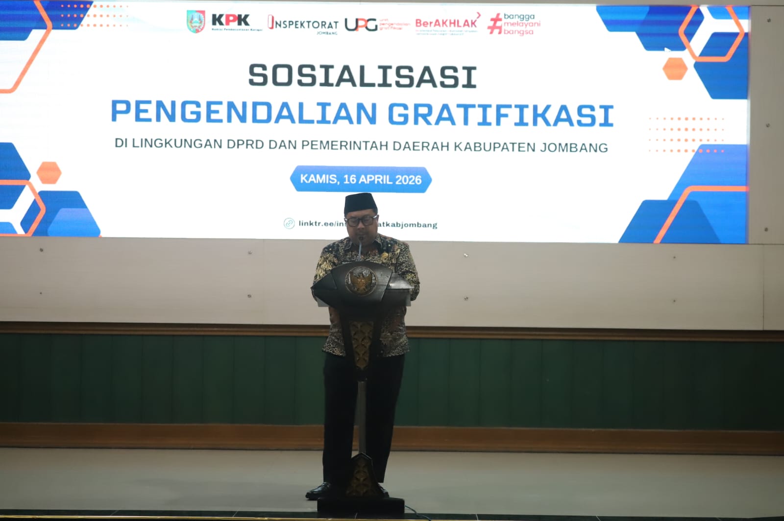 JOMBANGKAB – Pemerintah Kabupaten Jombang menegaskan komitmennya dalam mewujudkan tata kelola pemerintahan yang bersih dan transparan. Langkah ini diwujudkan melalui agenda Sosialisasi Pengendalian Gratifikasi yang digelar di Ruang Bung Tomo, Kantor Pemkab Jombang, Kamis (16/04/2026).