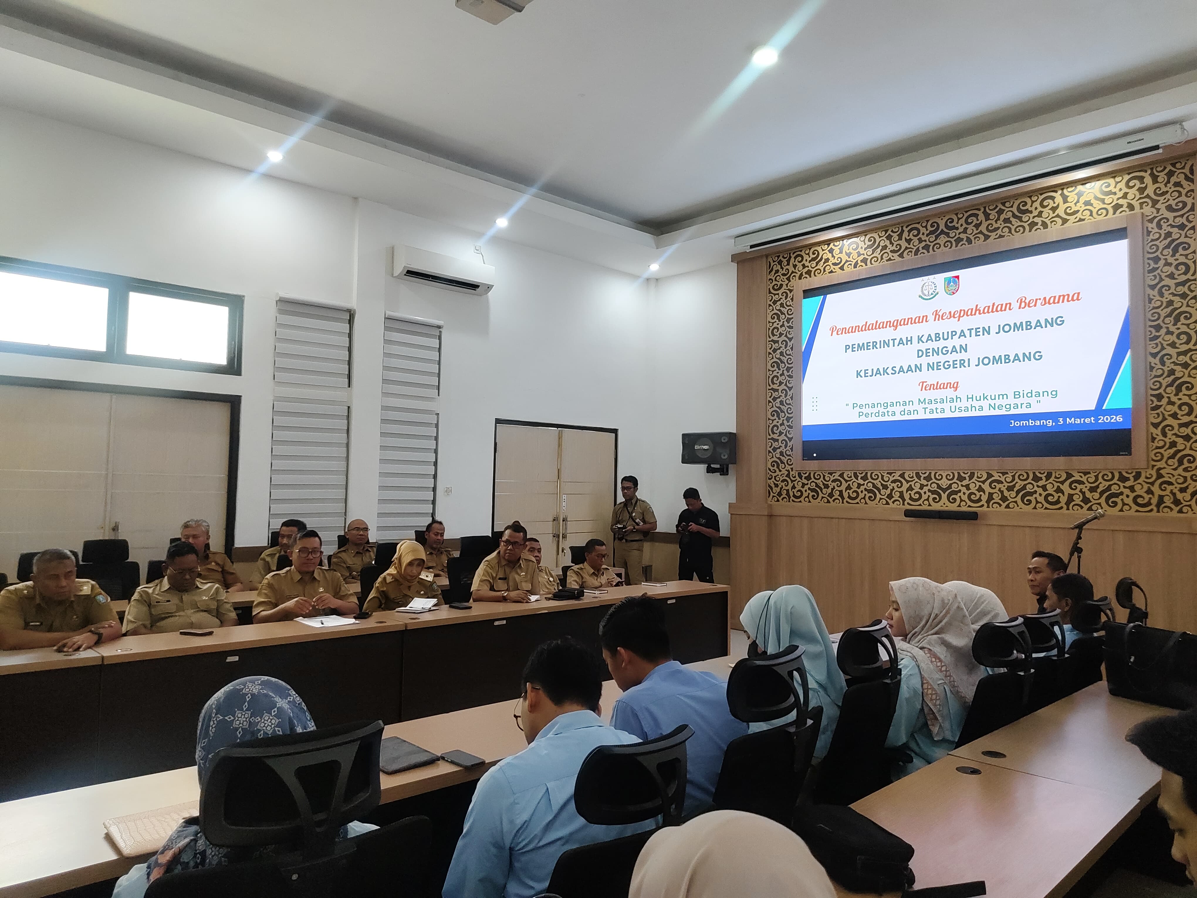 JOMBANGKAB – Pemerintah Kabupaten Jombang resmi memperpanjang kerja sama strategis dengan Kejaksaan Negeri (Kejari) Kabupaten Jombang melalui penandatanganan Kesepakatan Bersama (MoU) tentang Penanganan Masalah Hukum Bidang Perdata dan Tata Usaha Negara (Datun). Acara digelar di Ruang Swagata Pendopo Kabupaten Jombang, Selasa (3/3/2026) pagi.