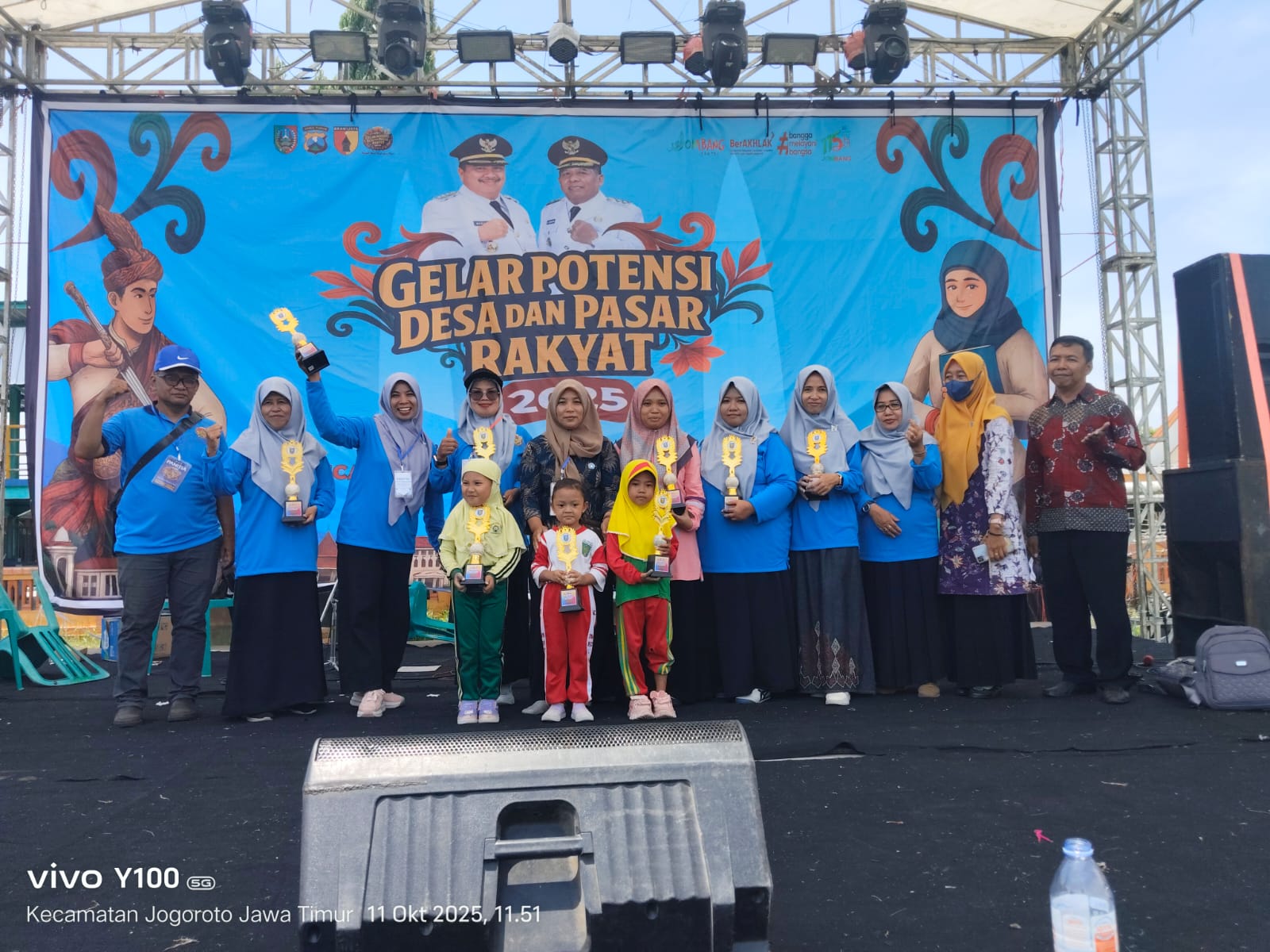 Penerimaan Piala Lomba Mewarnai Anak TK, RA dan PAUD pada Gelar Potensi Desa dan Pasar Rakyat Jogoroto 2025