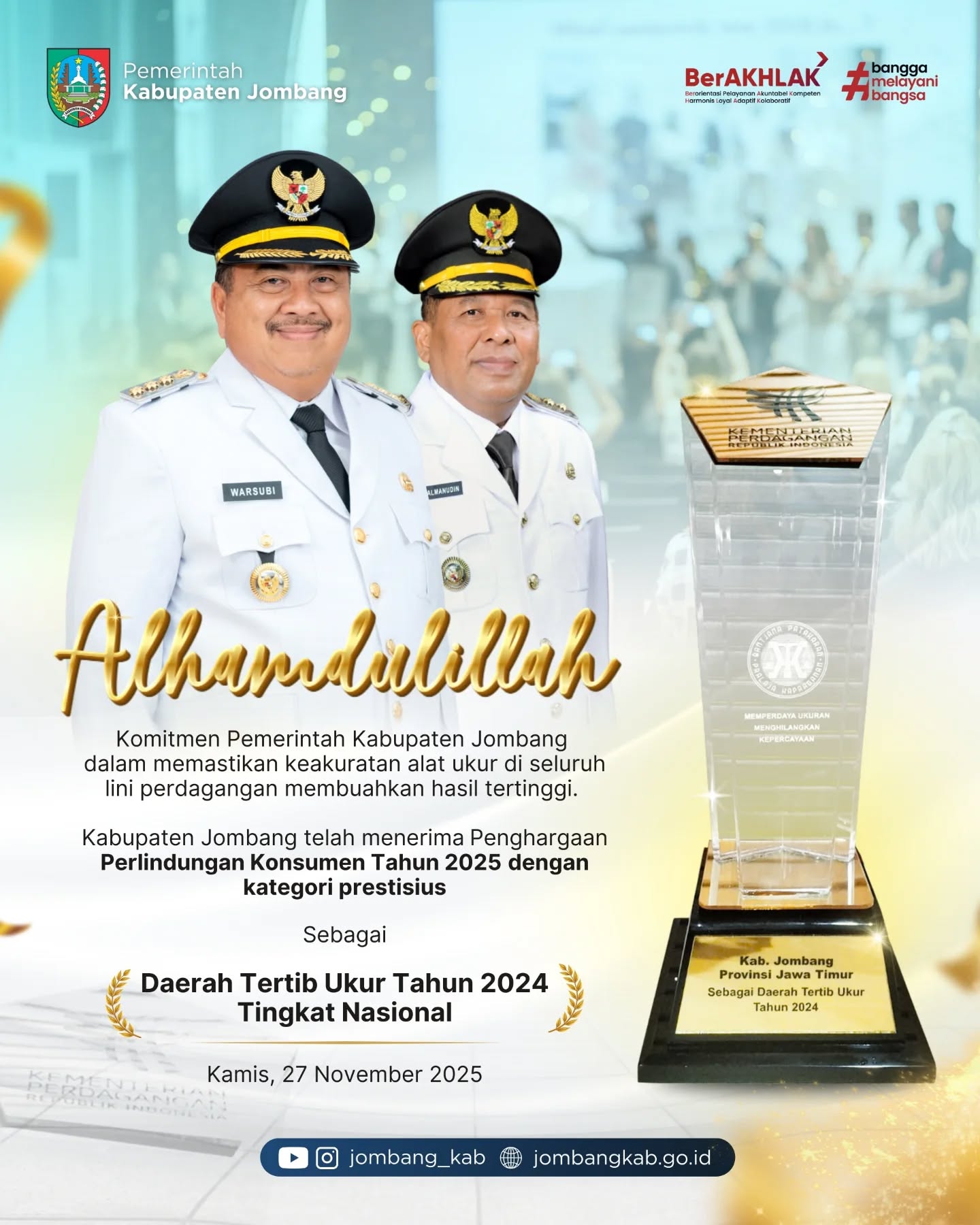 Kabupaten Jombang Raih Penghargaan Daerah Tertib Ukur Tingkat Nasional