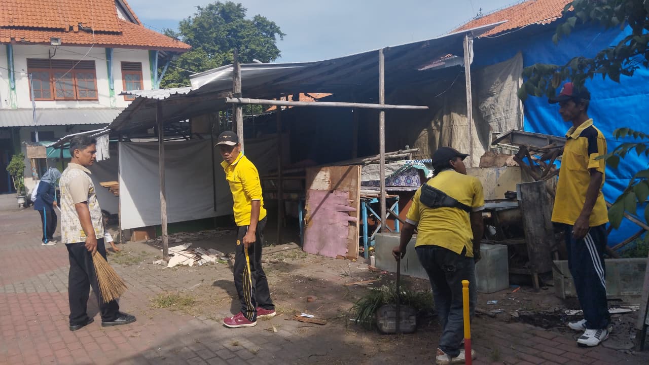 UPT Pasar Disdagrin Jombang bekerja sama dengan DLH Jombang melaksanakan kegiatan kerjabakti di Pasar Legi Citra Niaga Jombang.