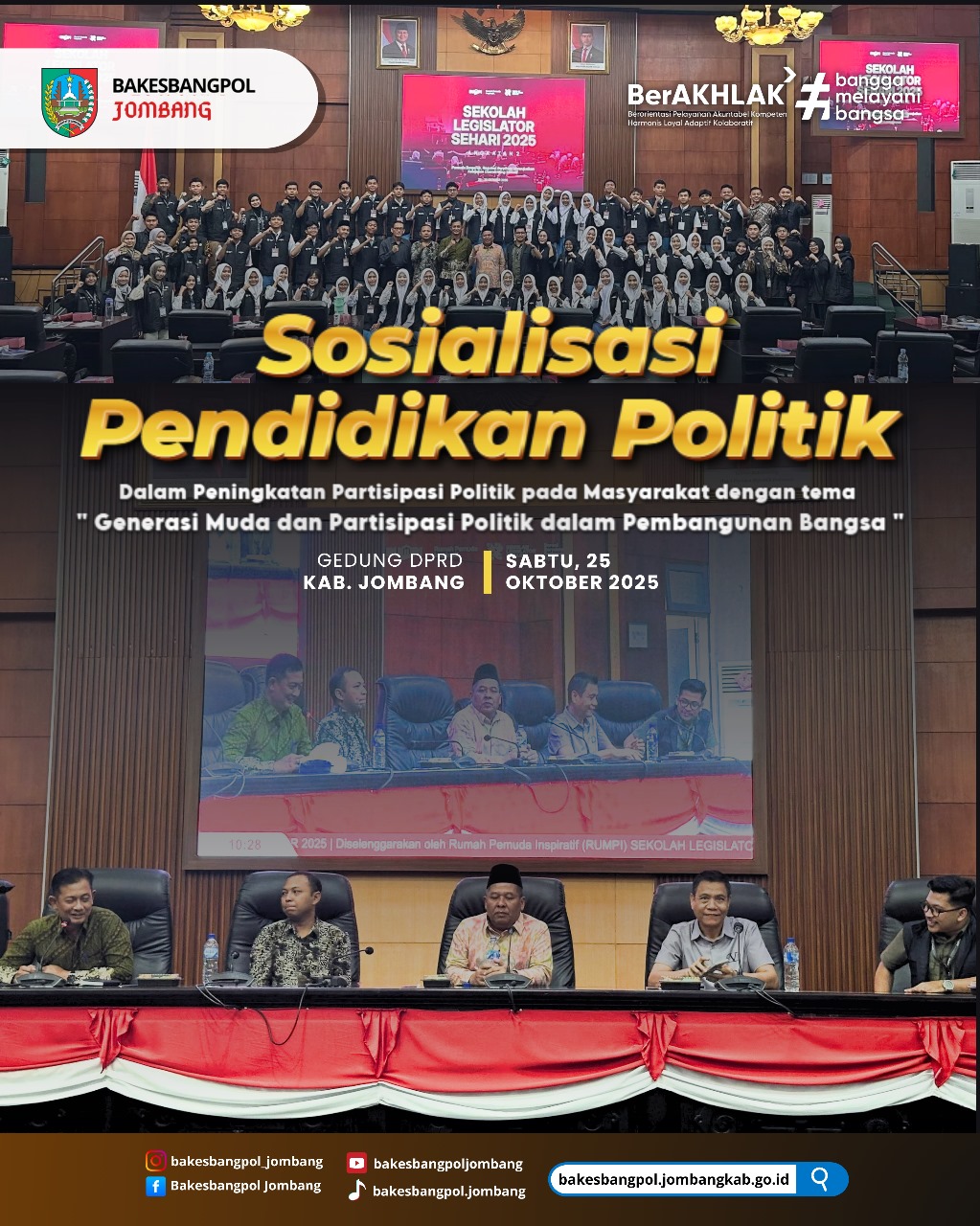 Sosialisasi Pendidikan Politik dalam Peningkatan Partisipasi Politik pada Masyarakat dengan tema "Generasi Muda dan Partisipasi Politik dalam Pembangunan Bangsa” di Gedung DPRD Kabupaten Jombang