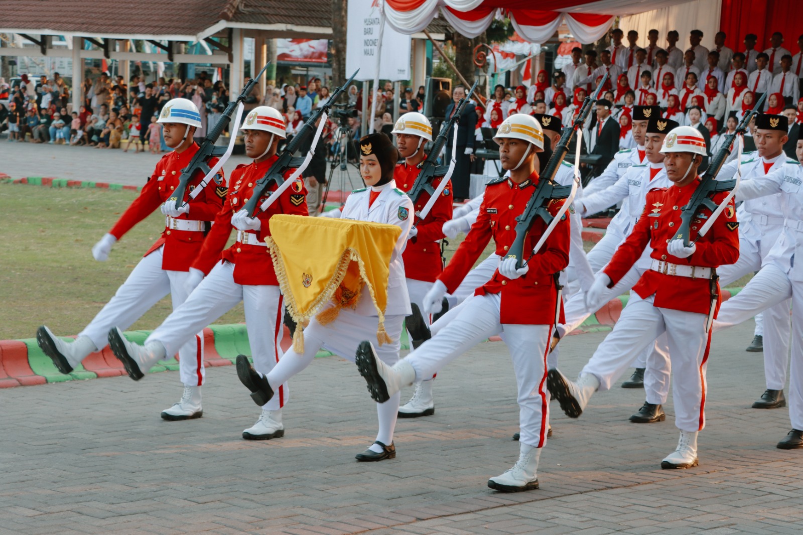 KERJA BHAKTI PEMBERSIHAN LAPANGAN UPACARA DAN PEMASANGAN BENNER HUT KE 79 PROKLAMASI KEMERDEKAAN STAF KECAMATAN JOGOROTO BERSAMA ANGGOTA KORAMIL, POLSEK DAN LDII JOGOROTO PADA TANGGAL 15 AGSTUS 2024