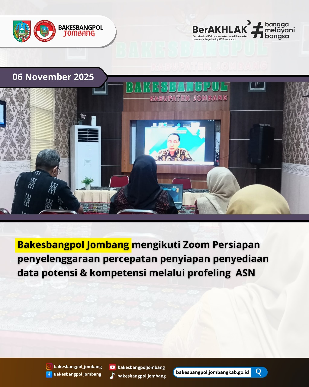 Read More Bakesbangpol Jombang Hadiri Zoom Persiapan Pelaksanaan Profiling ASN Tahun 2025 Badan Kesatuan Bangsa dan Politik
