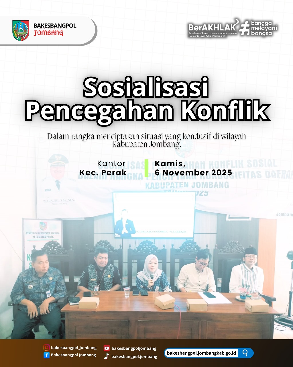 Read More Sosialisasi Pencegahan Konflik Sosial Dalam Rangka Penciptaan Kondusifitas Daerah Kabupaten Jombang Tahun 2025 di Kantor Kecamatan Perak Badan Kesatuan Bangsa dan Politik