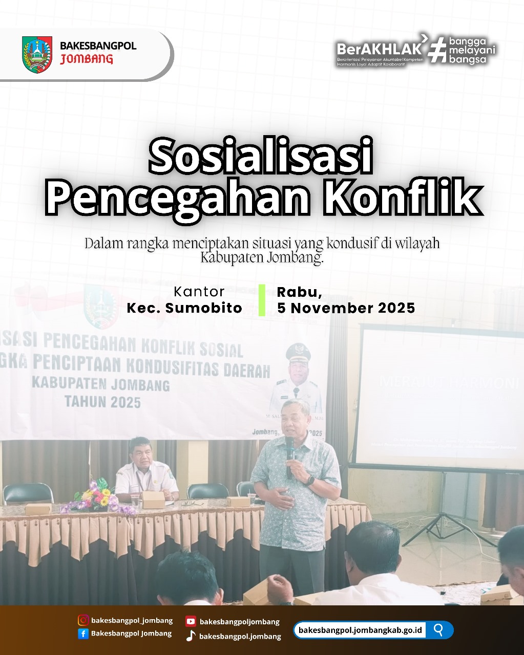 Read More Sosialisasi Pencegahan Konflik Sosial Dalam Rangka Penciptaan Kondusifitas Daerah Kabupaten Jombang Tahun 2025 di Kantor Kecamatan Sumobito Badan Kesatuan Bangsa dan Politik