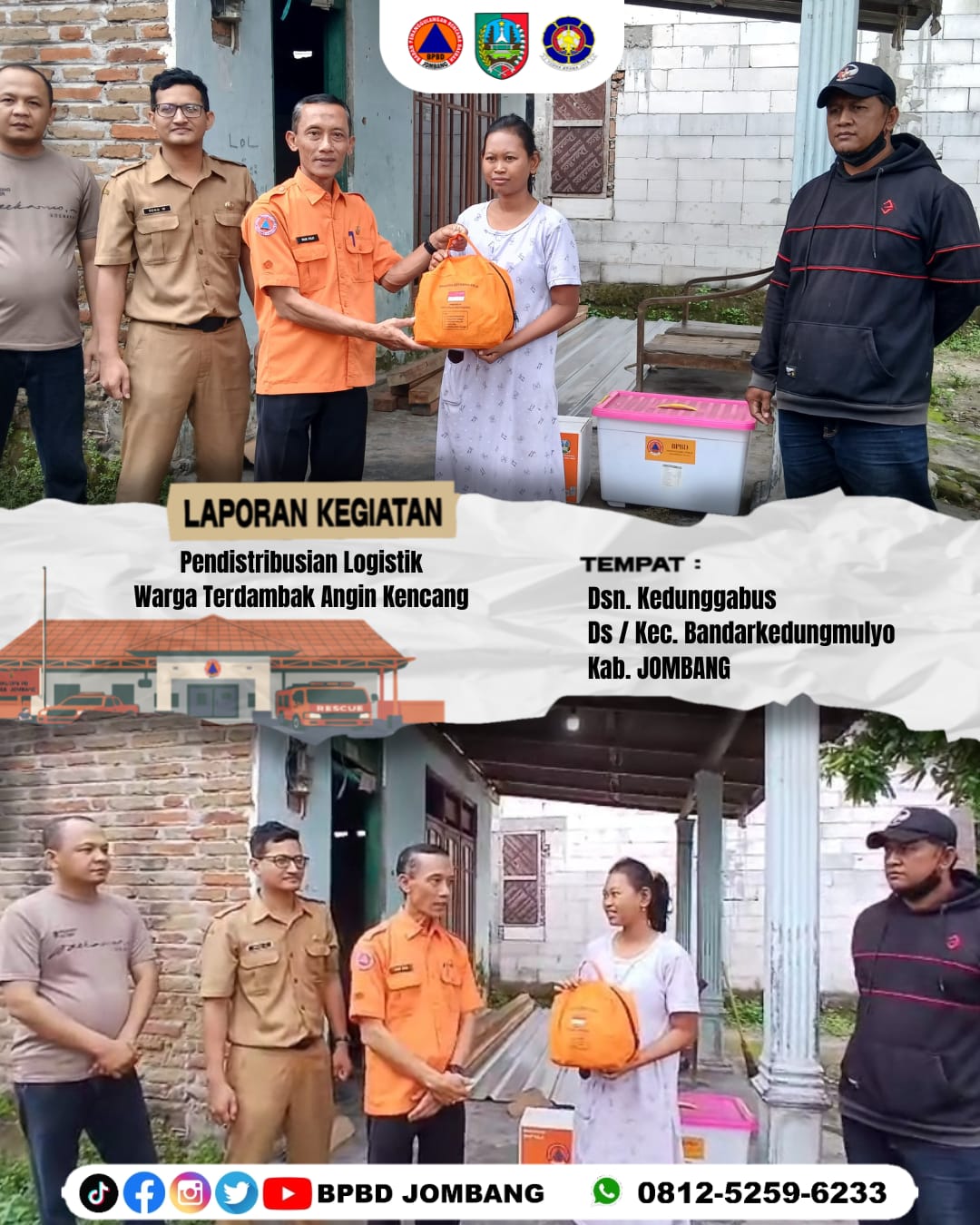 Read More BPBD KABUPATEN JOMBANG SALURKAN BANTUAN LOGISTIK BAGI WARGA TERDAMPAK ANGIN KENCANG DI BANDARKEDUNGMULYO Badan Penanggulangan Bencana Daerah
