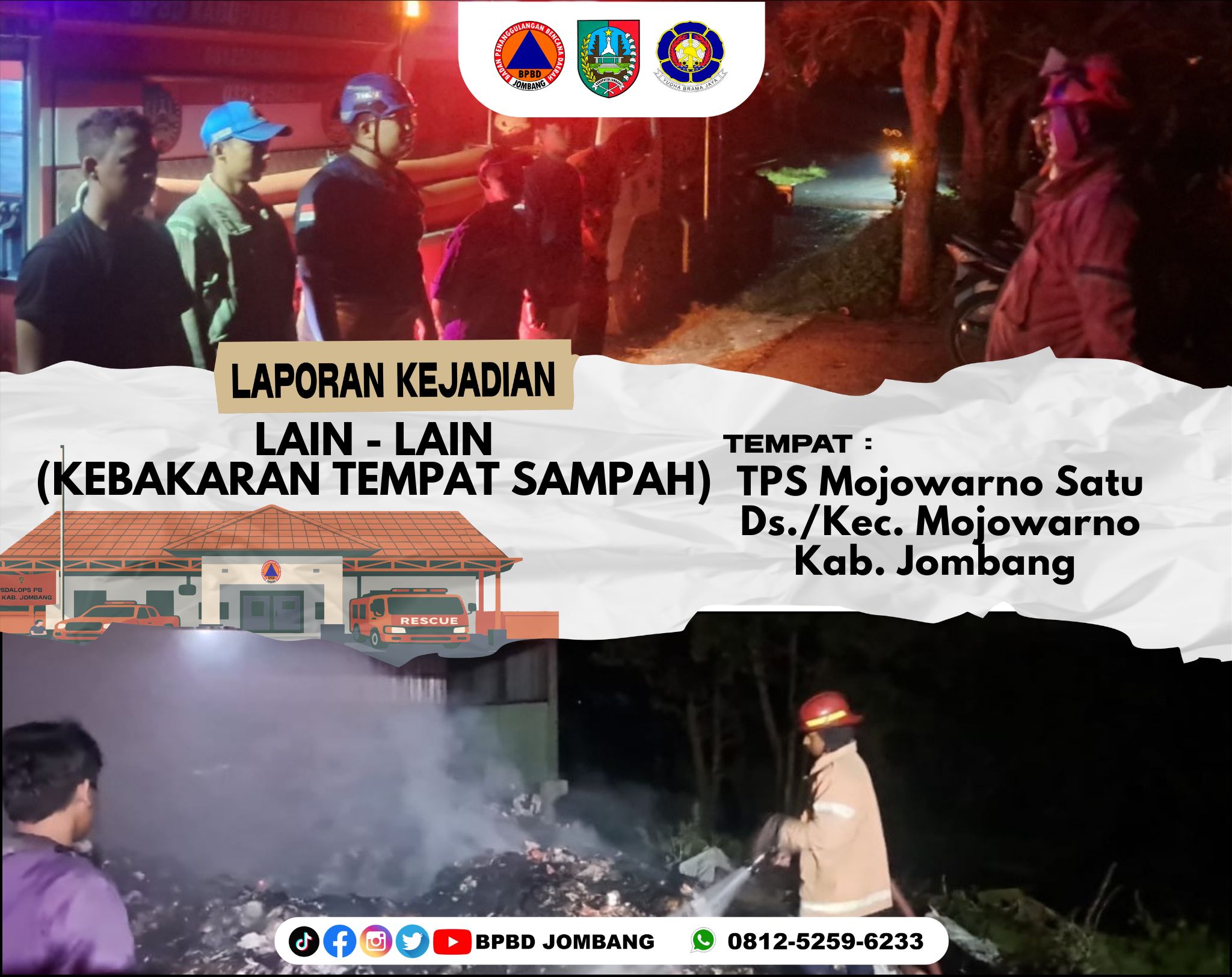 Read More Kebakaran Sampah di TPS Mojowarno Berhasil Dipadamkan, Respons Cepat Tim Gabungan Cegah Dampak Lebih Luas Badan Penanggulangan Bencana Daerah