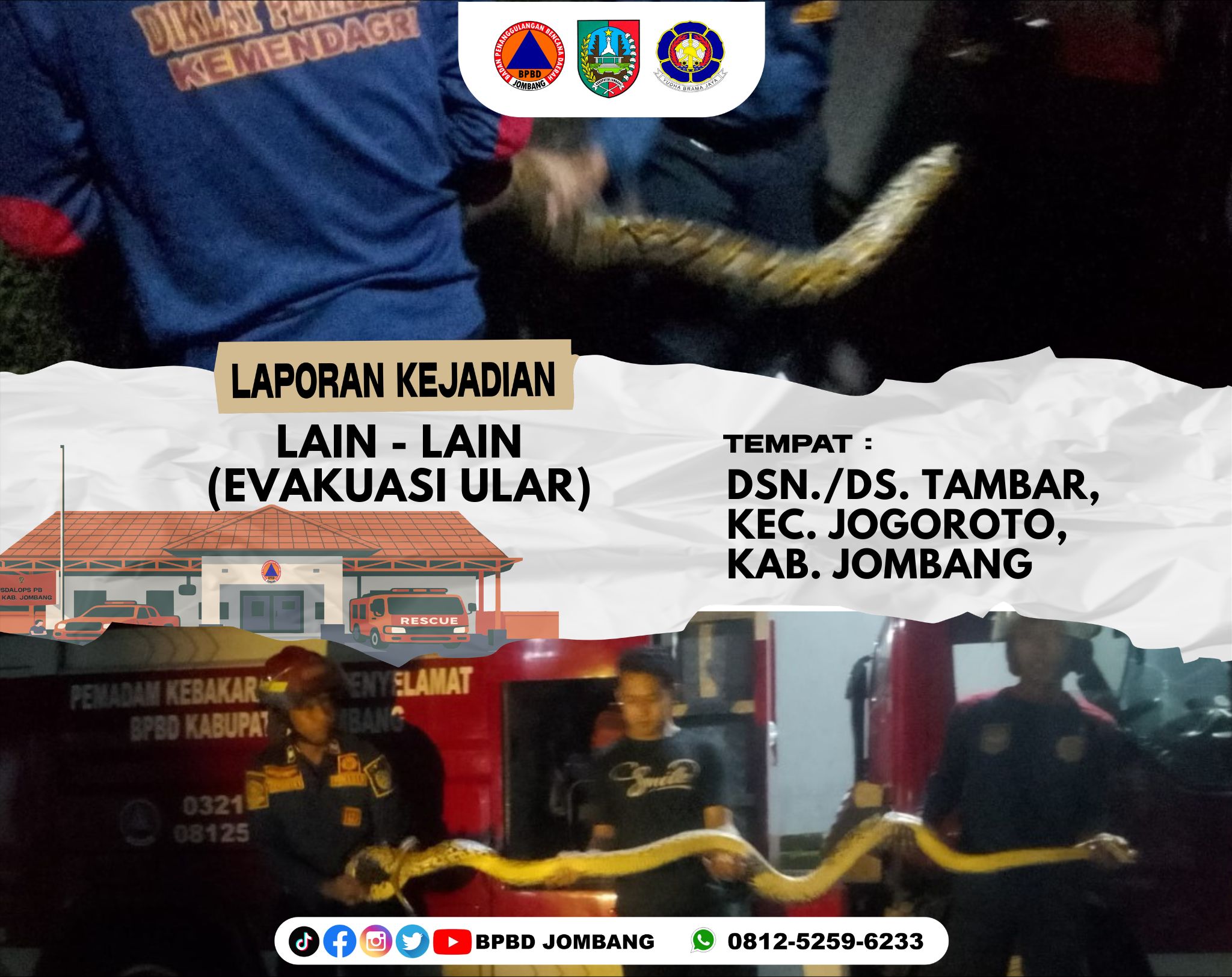 Read More Aksi Cepat Jelang Subuh, Tim Damkar Jombang Evakuasi Ular di Permukiman Warga Jogoroto Badan Penanggulangan Bencana Daerah