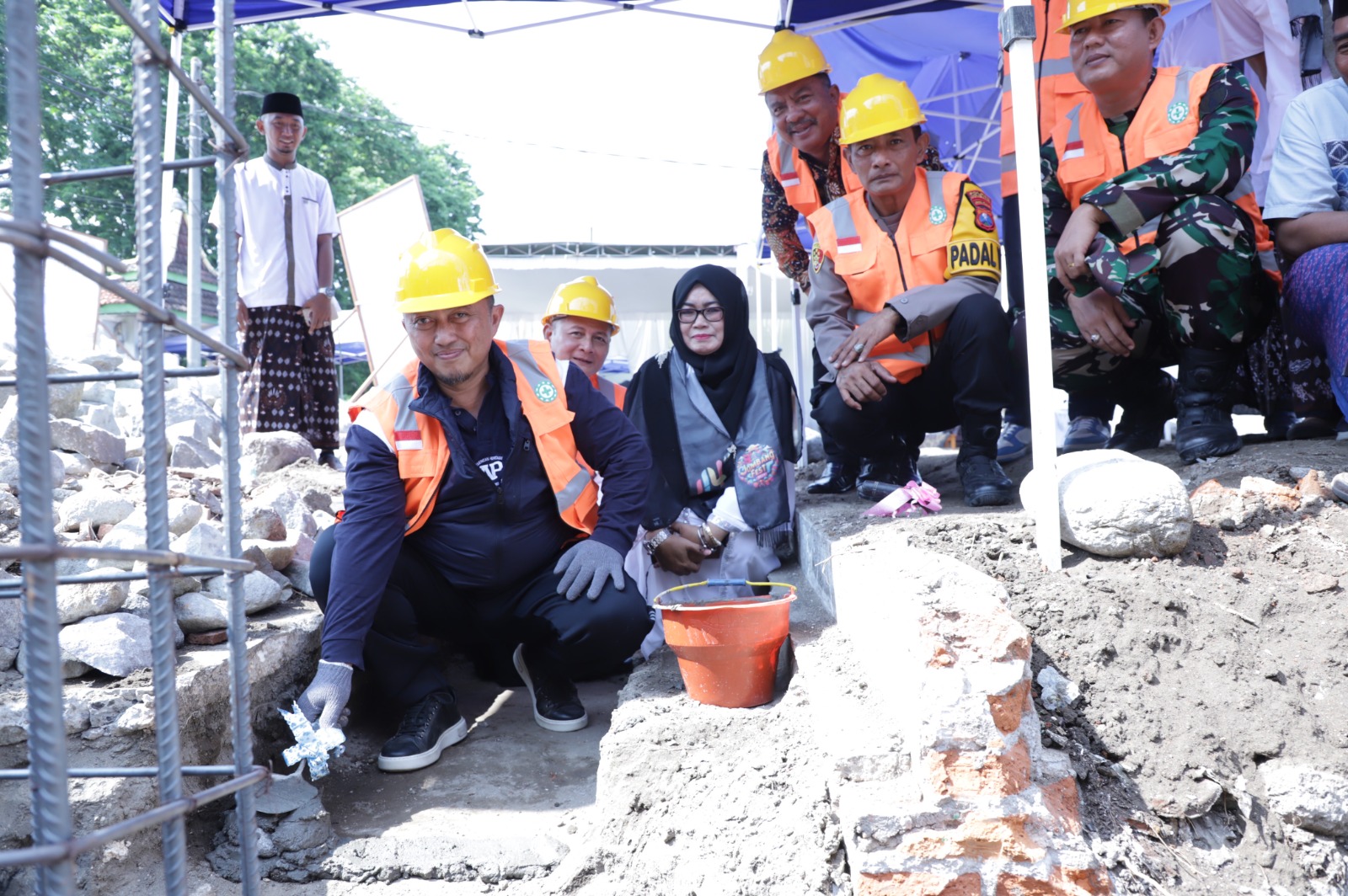 Pj Bupati Jombang Teguh Narutomo menyampaikan rasa syukurnya, karena dapat membersamai perangkat Desa Jombang, Kecamatan Jombang dalam rangka peletakan batu pertama pembangunan Kantor Desa Jombang.