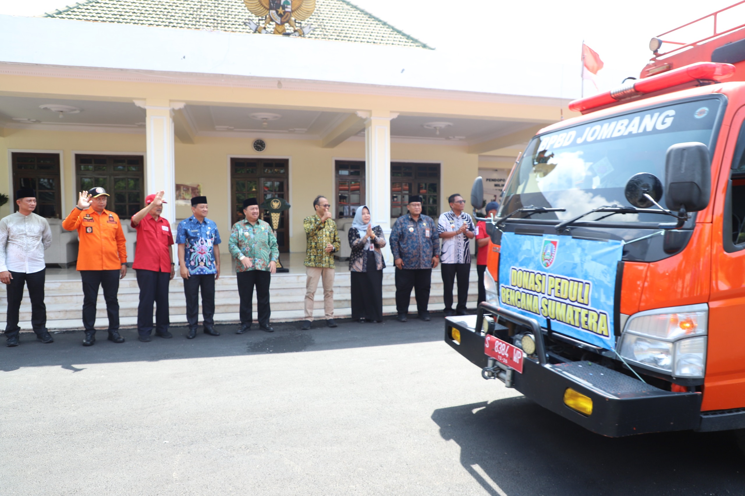 JOMBANGKAB – Bupati Jombang, Warsubi S.H., M.Si., Jumat (12/12/2025) pagi, melepas pemberangkatan bantuan kemanusiaan dari Pendopo Kabupaten Jombang. Bantuan ini ditujukan bagi saudara-saudara sebangsa yang tengah terdampak bencana alam di wilayah Sumatera.