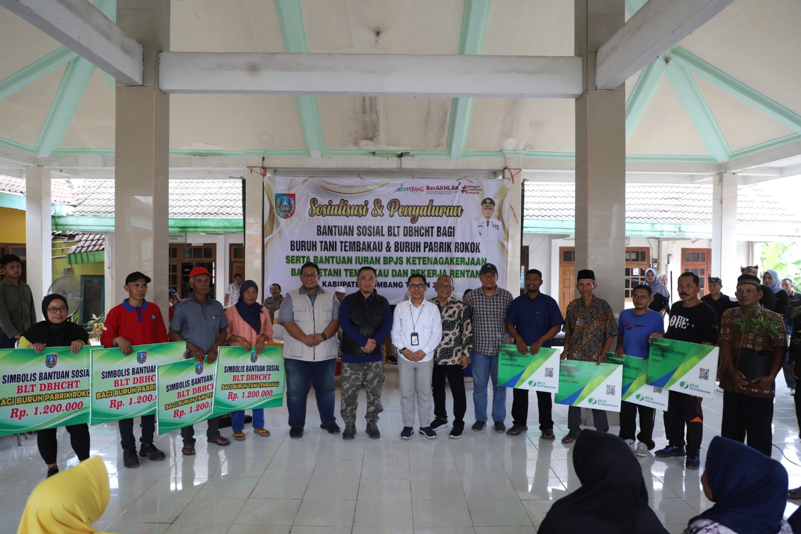 JOMBANGKAB - Pemerintah Kabupaten Jombang telah menyalurkan BLT DBHCHT bagi buruh tani tembakau dan buruh pabrik rokok, bantuan iuran BPJS Ketenagakerjaan bagi petani tembakau dan pekerja rentan, serta pencanangan gerakan tanam cabai yang dilaksanakan di kantor Balai Desa Bendungan, Kudu, Jombang pada Minggu (08/09/2024)