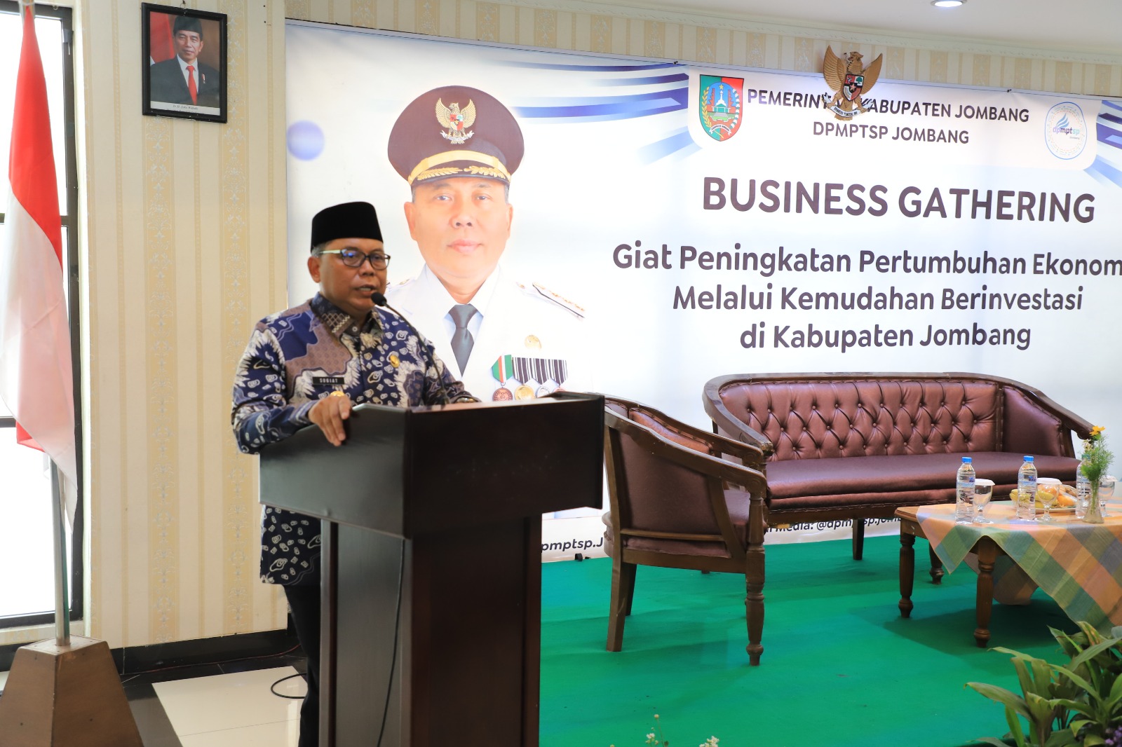 Hadir Pj Bupati Jombang Sugiat S.Sos., M.Psi.T., didampingi Pj Ketua Tim Penggerak PKK Kabupaten Jombang. Kepala Dinas Penanaman Modal dan PTSP Provinsi Jawa Timur, diwakili oleh Mohammad Arief Fairony, S.E Koordinator Substansi Perencanaan dan Pengembangan Iklim Penanaman Modal. Konsultan Ahli Peta dan Peluang Investasi Dr. Hafid Leviyanto, S.T., M.M., M.AP. Kepala Kadin (Kamar Dagang dan Industri Indonesia) Provinsi Jawa Timur. Sekretaris Daerah Kabupaten Jombang, Staf Ahli, Asisten, dan Kepala OPD terkait lingkup Pemkab Jombang, Direktur Perusda di Kabupaten Jombang, Ketua ISMI (Ikatan Saudagar Muslim Indonesia) Kabupaten Jombang, Ketua HIPMI (Himpunan Pengusaha Muda Indonesia) Kabupaten Jombang.