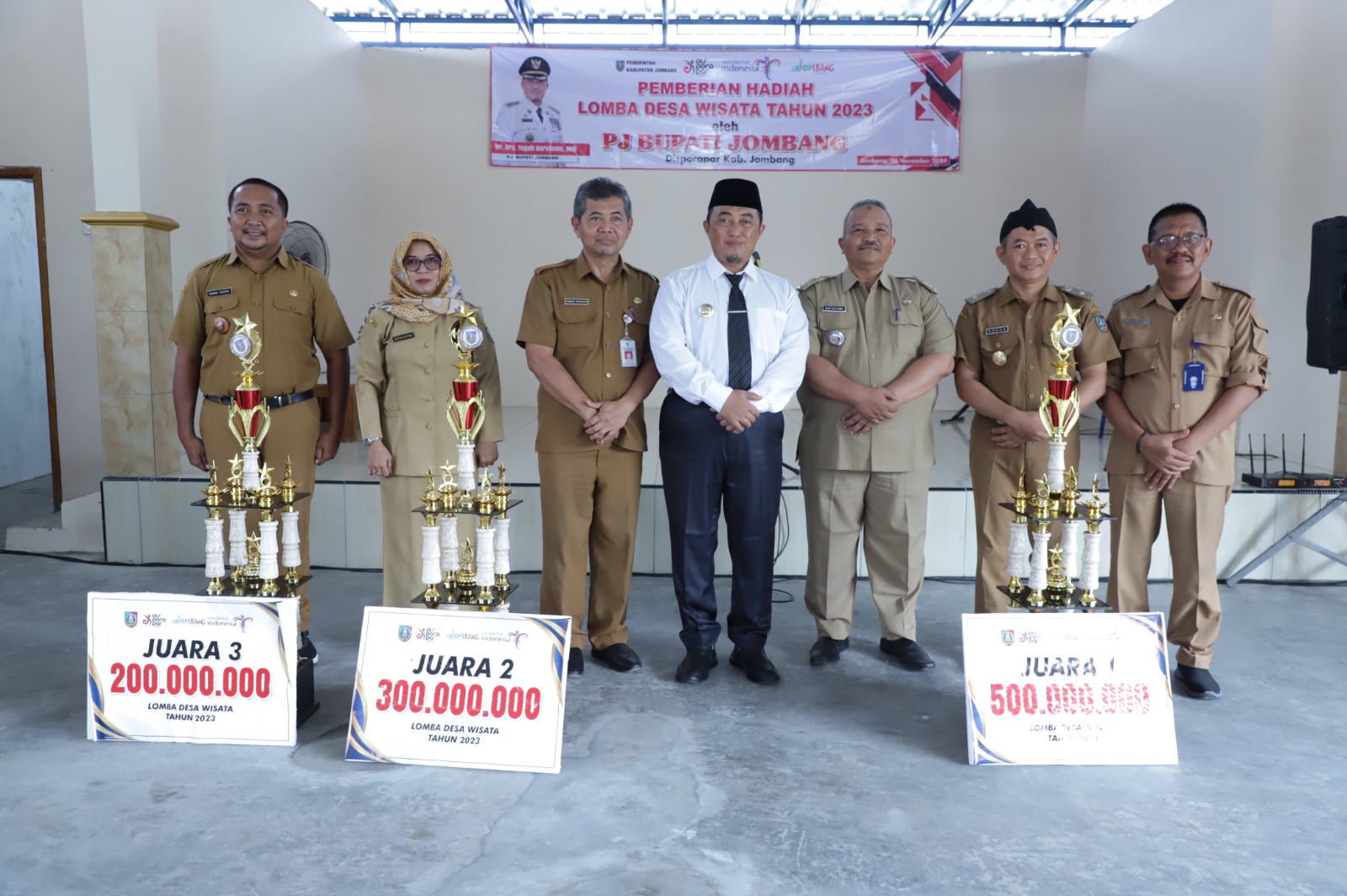 “Saya ucapkan selamat kepada para pemenang lomba desa wisata tahun 2023, yaitu Desa Ngampungan Kecamatan Bareng dengan wisata Pandansili, Desa Bulurejo Kecamatan Diwek dengan Agrowisata Sumberceleng, dan Desa Mojotrisno Kecamatan Mojoagung dengan wisata Pasar Barongan", tutur Pj Bupati Jombang Teguh Narutomo.