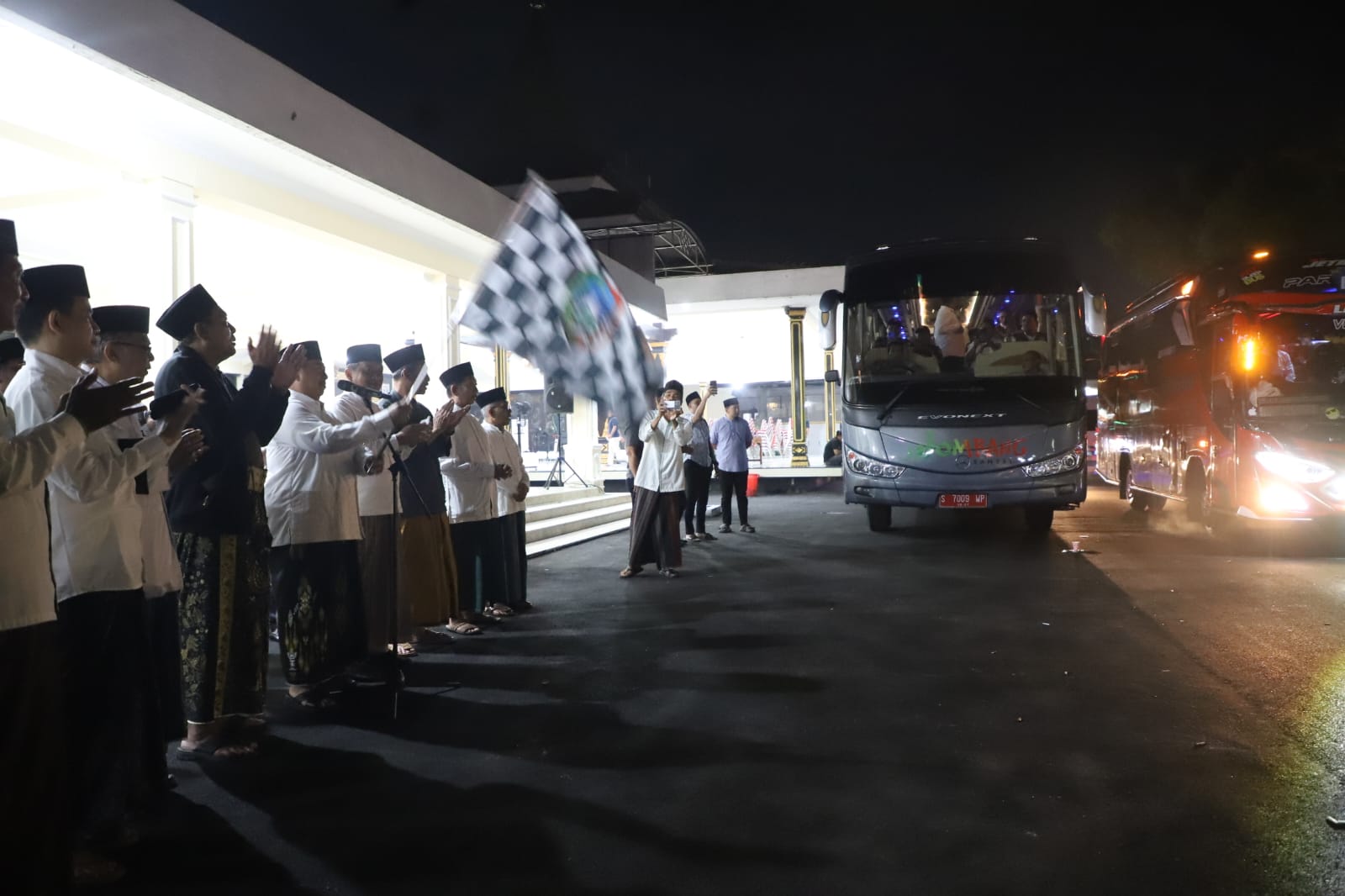 Bupati Warsubi berdoa agar seluruh jamaah diberikan kelancaran, keamanan, dan keselamatan selama perjalanan hingga kembali ke Jombang dalam keadaan sehat wal afiat.