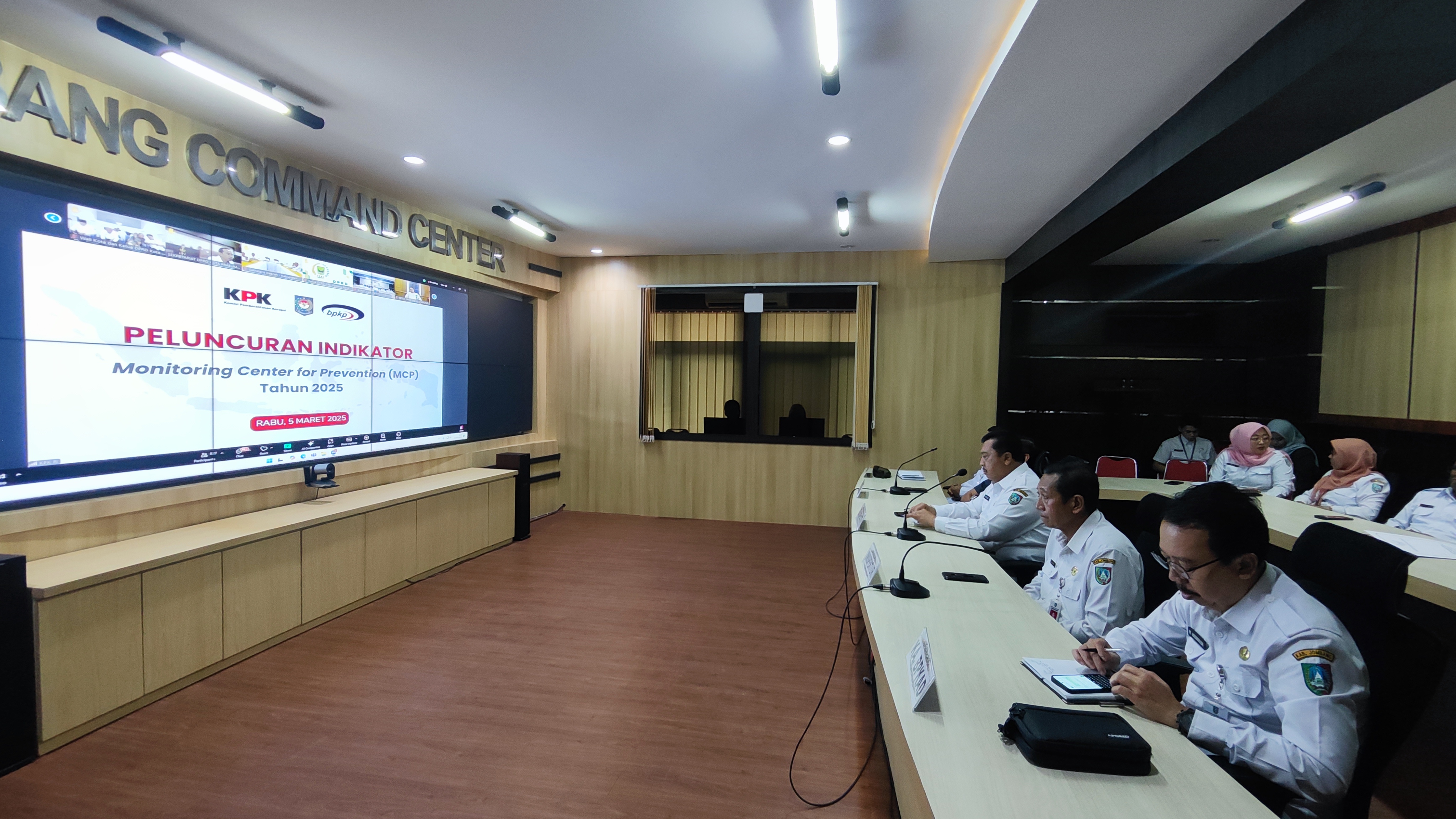 JOMBANGKAB - Pemerintah Kabupaten Jombang mengikuti Grand Launching Indeks Pencegahan Korupsi Daerah (IKPD) Monitoring Center for Prevention (MCP) Tahun 2025 via zoom di Jombang Command Center pada Rabu (5/03/2025) pagi. Hadir dalam kegiatan ini Bupati Jombang Warsubi, S.H., M.Si., Ketua DPRD Jombang Hadi Atmaji, S.Ag, dan jajaran Kepala OPD Lingkup Pemkab Jombang.